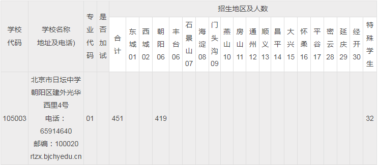 北京日坛中学2023统招计划