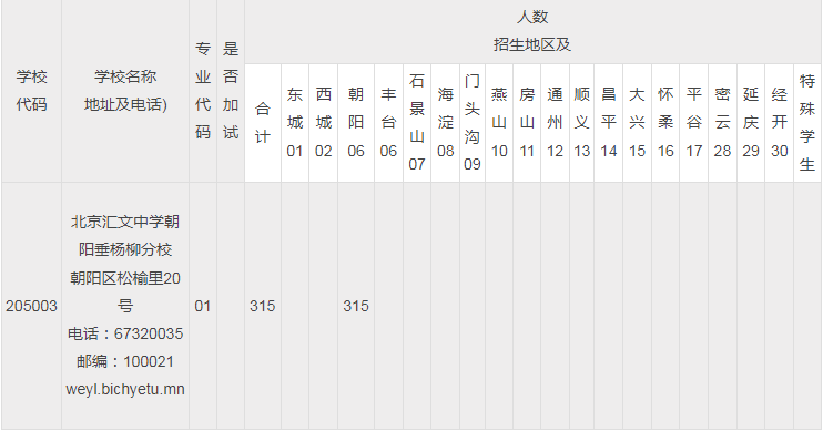 汇文中学朝阳垂杨柳分校2023年总共招生315人,统招计划315人。各位想要报名汇文中学朝阳垂杨柳分校的考生和家长一定要提前了解各项招生数据,做好2024北京中考的准备。