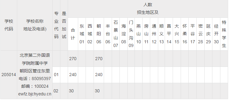 朝阳二外附中2023年总共招生270人,统招计划270人。各位想要报名朝阳二外附中的考生和家长一定要提前了解各项招生数据,做好2024北京中考的准备。