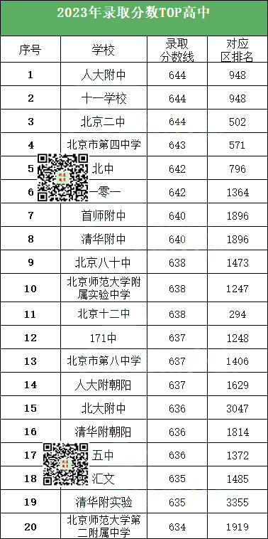 2023年北京中考已结束,各区录取分数线已出,admw360中考网收集整理了2023年北京中考排名前20高中,一起来看看你的目标校是哪一所?