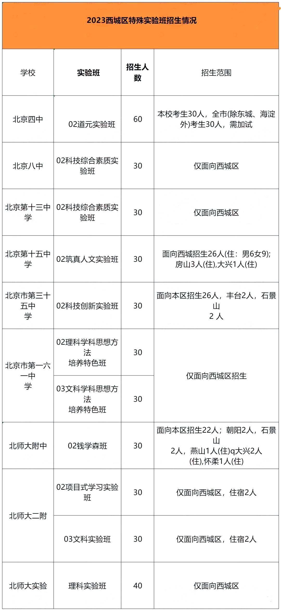 2023北京中考各校实验班(班型/人数/录取线)汇总