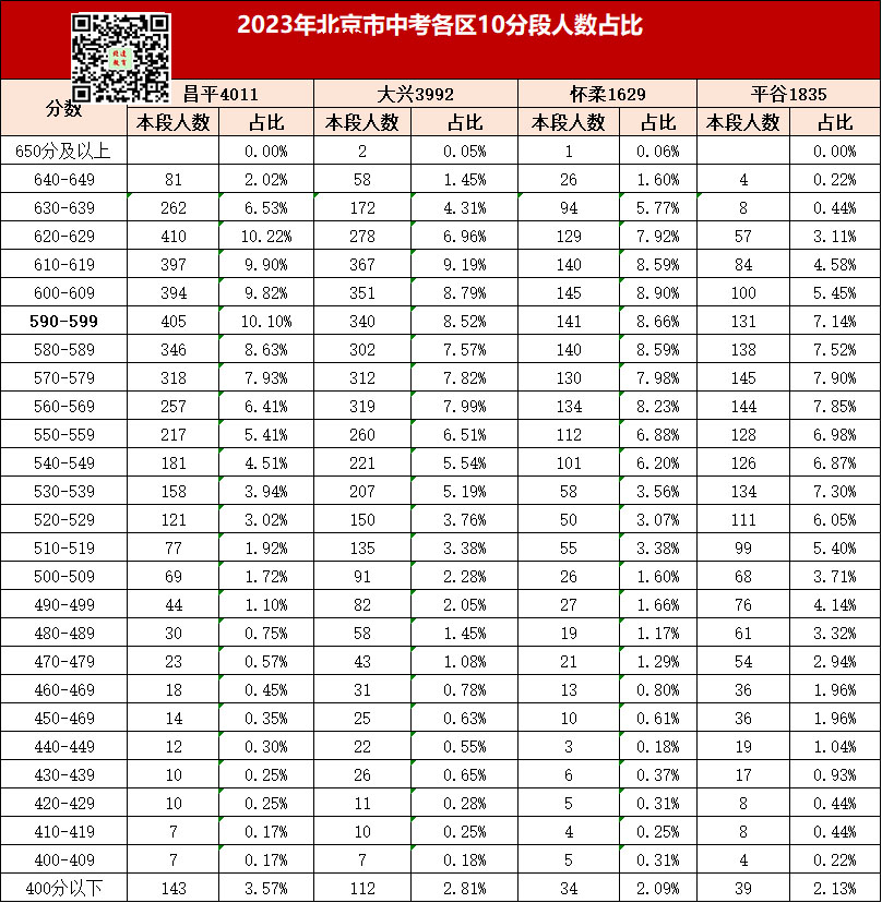 admw360中考网整理了2023北京昌平、大兴、怀柔、平谷中考10分段人数统计,分享给大家。