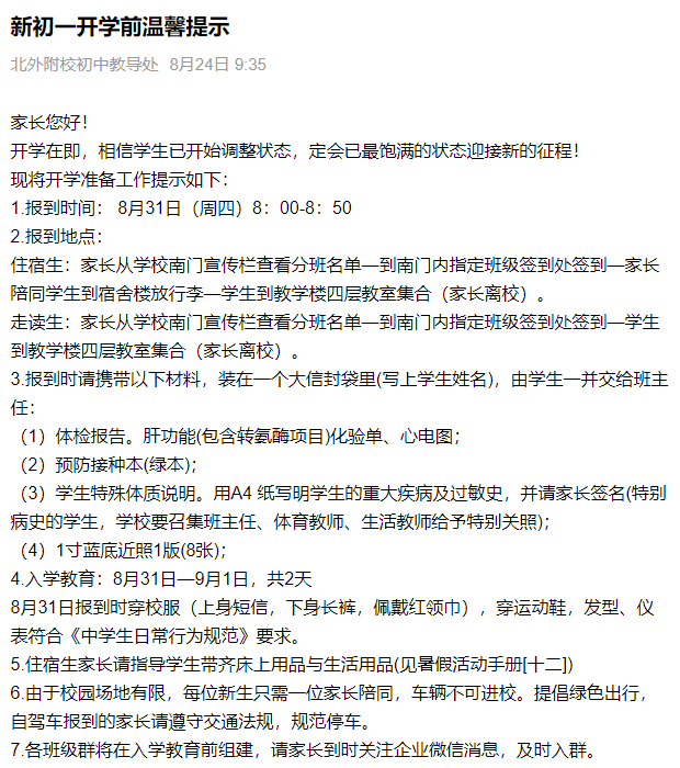 又是一年开学季,北京已有多所学校发布了新初一开学前提醒,包含入学须知、所需报道材料、入学后时间安排等等,那么,开学前还需准备什么?中小学新学期重点关注哪些大事?一起来看下!
