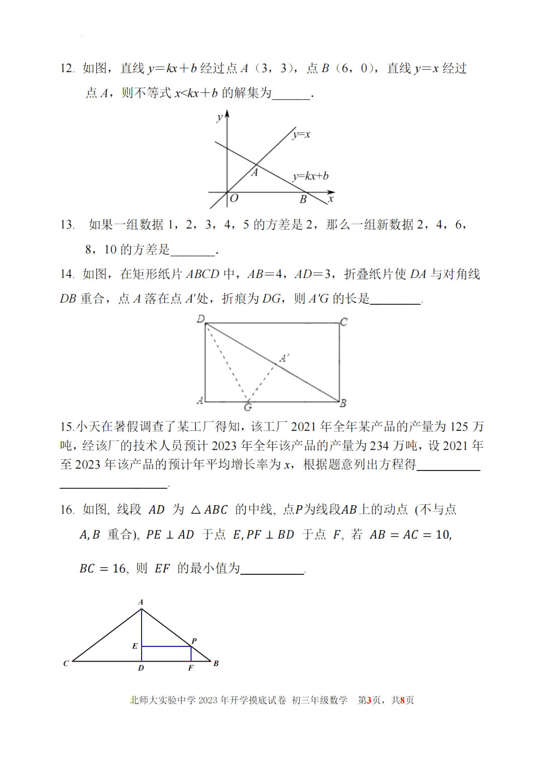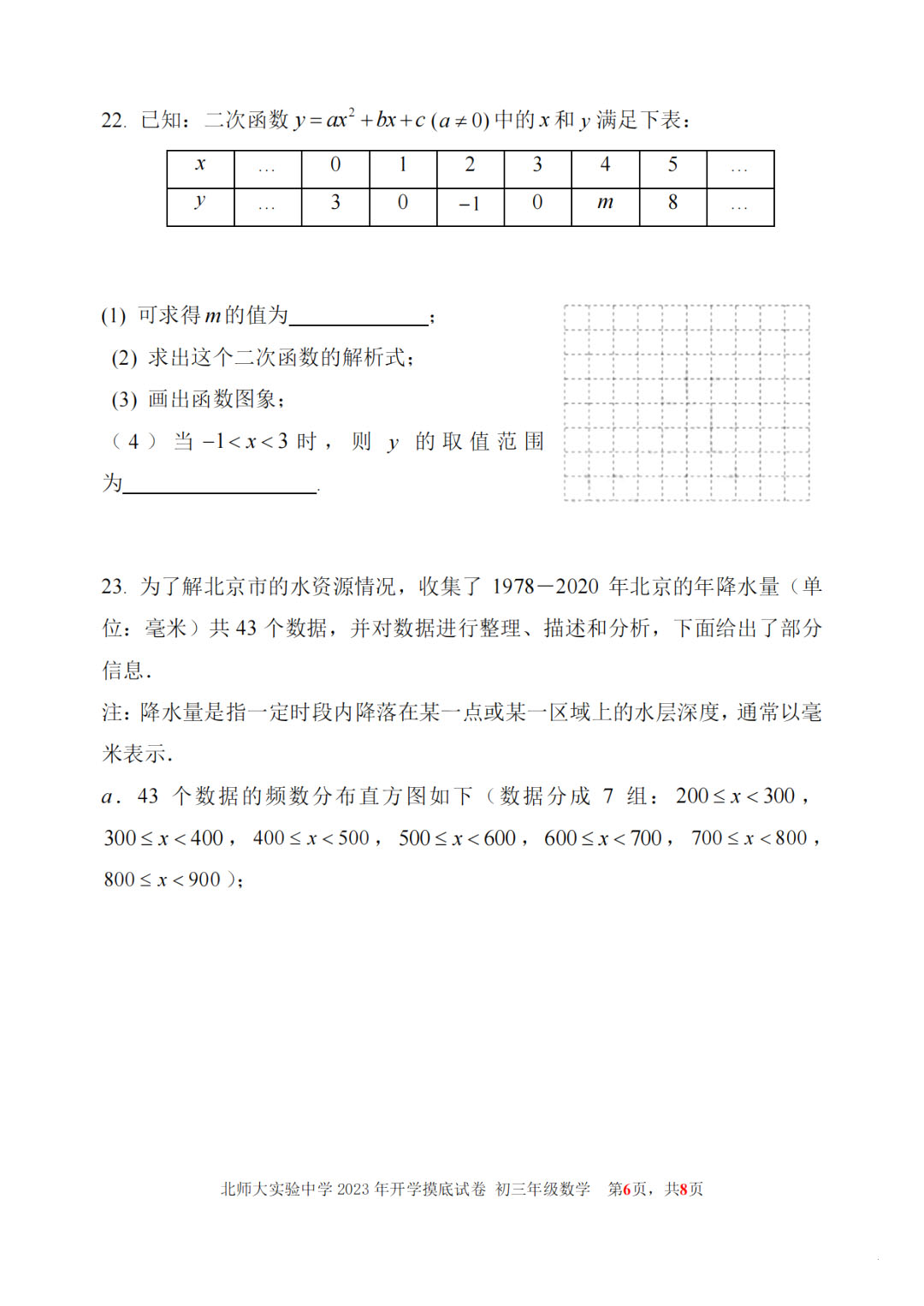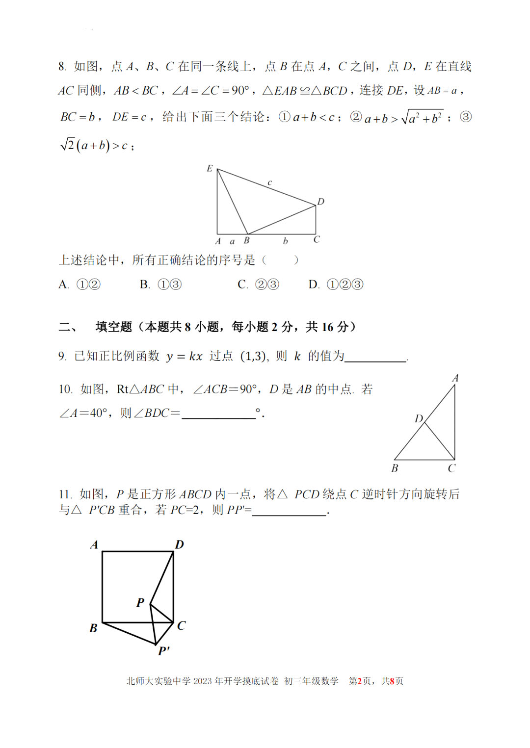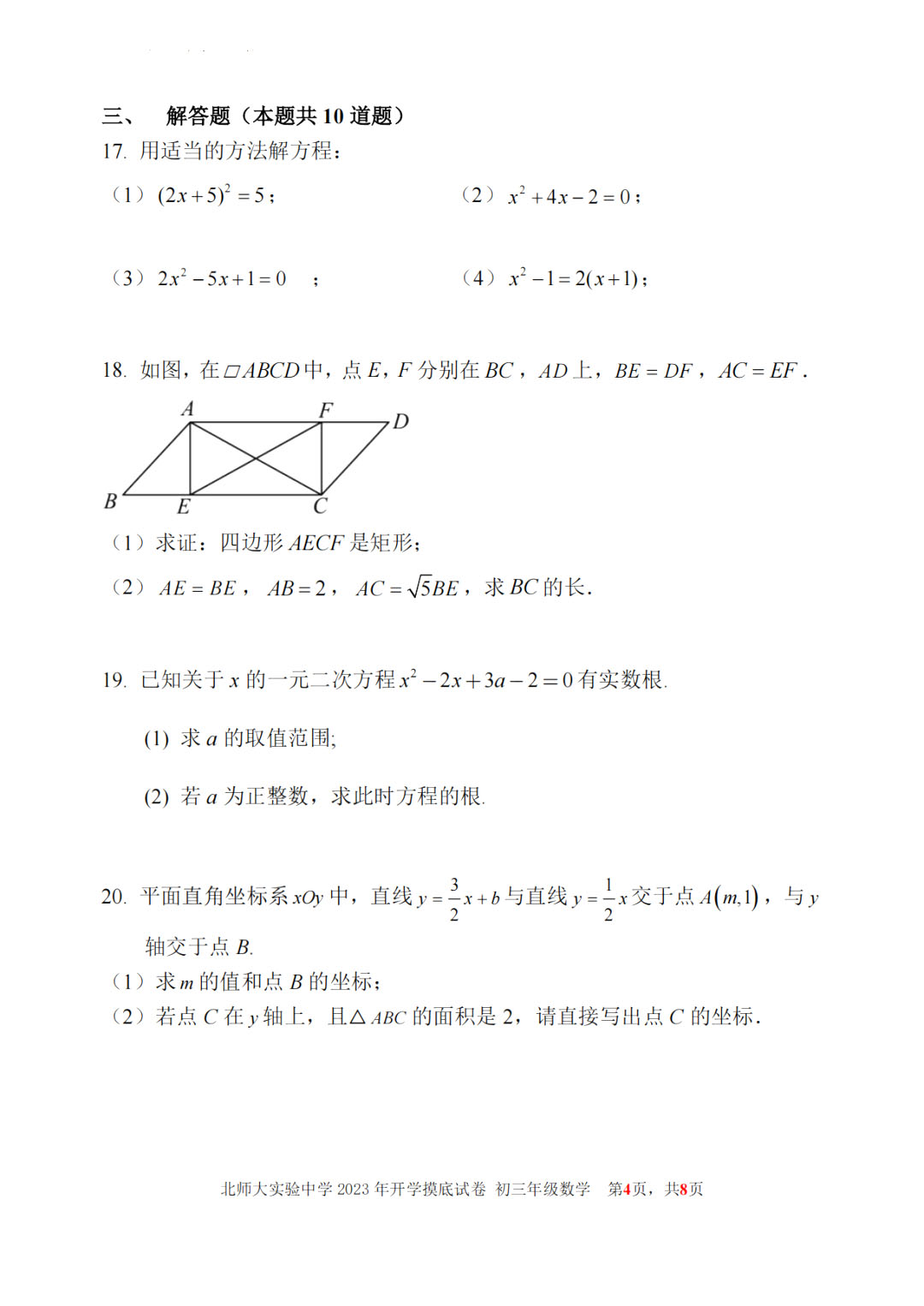 2023-2024学年北师大实验中学初三(上)数学开学测试题及答案已出,admw360中考网为大家整理了内容详情,赶紧下载做起来吧。