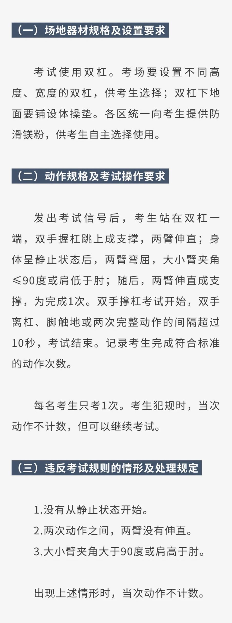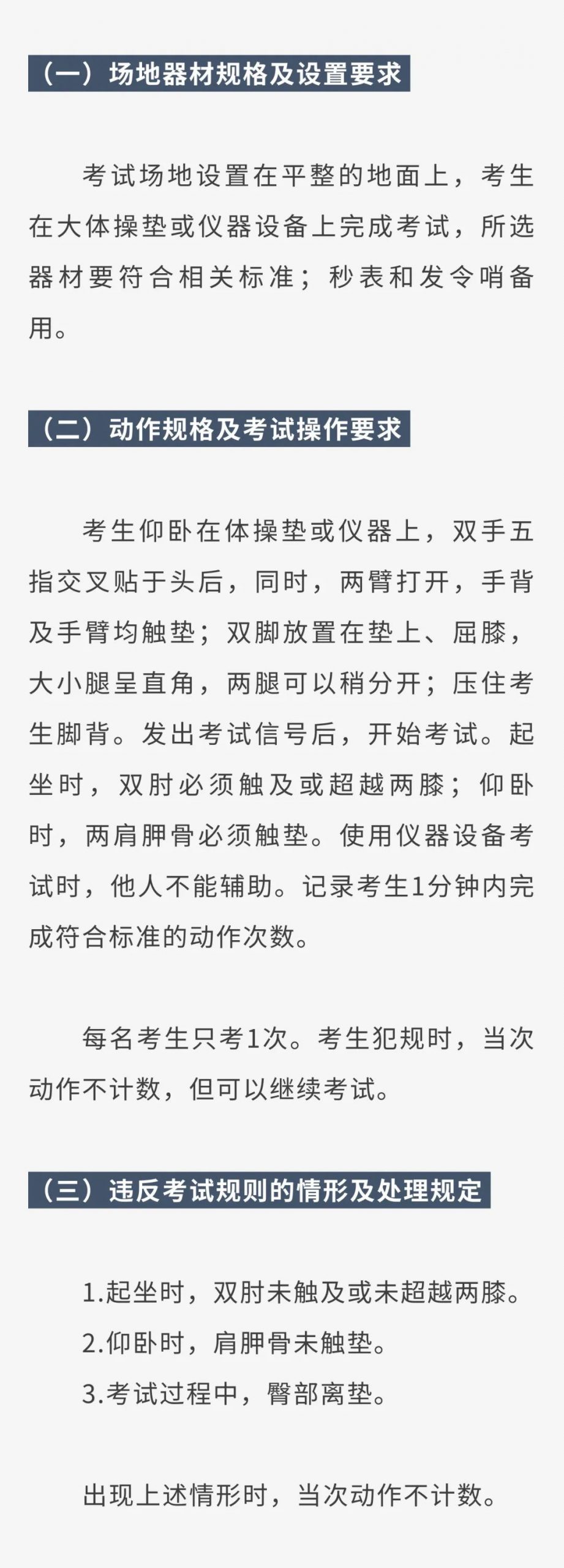 考试中选用的器材设施有何标准?动作规格及考试操作有什么要求?违反考试规则的情形及相应处理规定有哪些?一起来看↓↓
