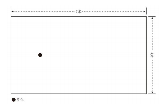 考试场地设置在平坦的地面上,长 7 米、宽 4 米,标示明显的场地边线和考生起始位置(如图所示)。考场设置安全、合理。有条件的区应该把场地设置在体育馆内。