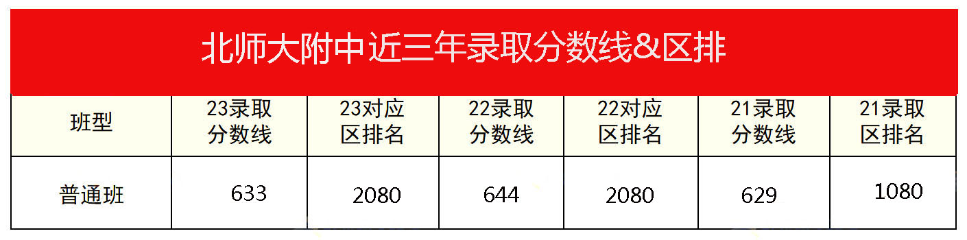 为方便2024年中考生参考,特整理了近3年北师大附中的录取分数线&区排情况~