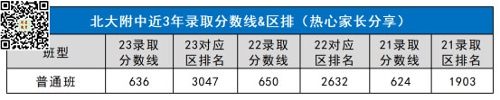 为方便2024年中考生参考,特整理了近3年北大附中的录取分数线&区排情况~