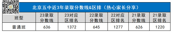 为方便2024年中考生参考,特整理了近3年北京五中的录取分数线&区排情况~