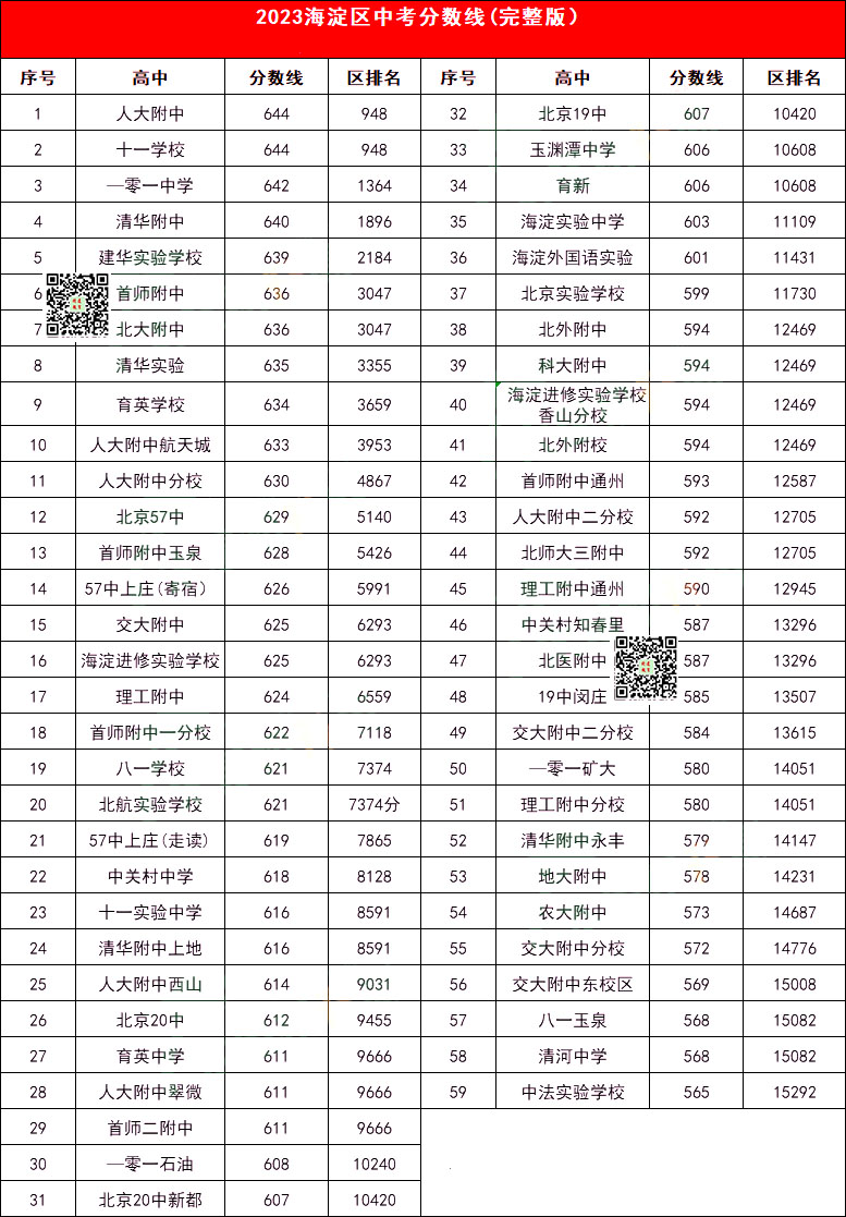 2024北京海淀区最低区排多少才能上高中?admw360中考网整理了2023海淀中考高中录取信息,分享给大家,2024届考生可参考。
