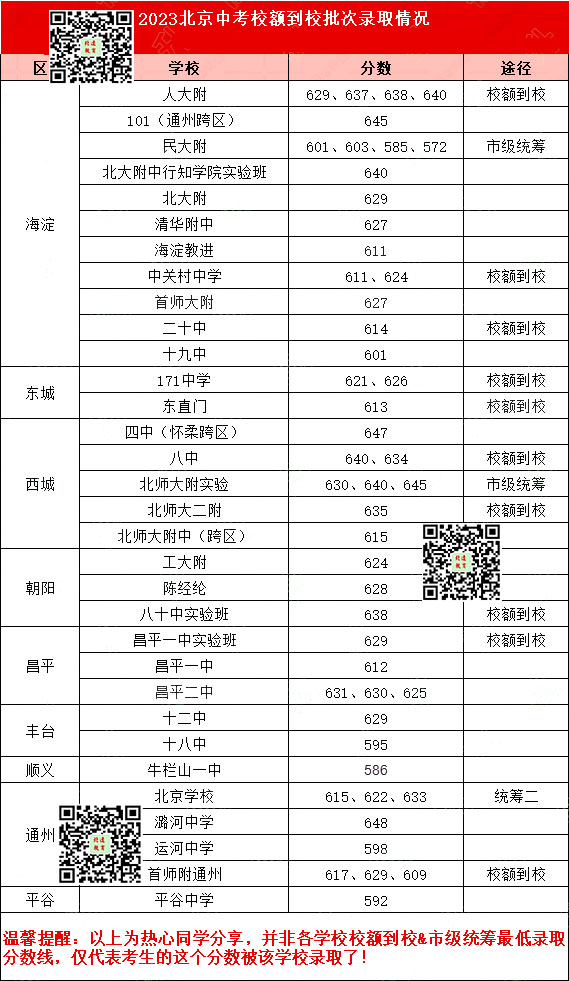 特别提醒:以下分数并非各学校校额到校&市级统筹最低录取分数线,仅代表考生的这个分数被该学校录取了!