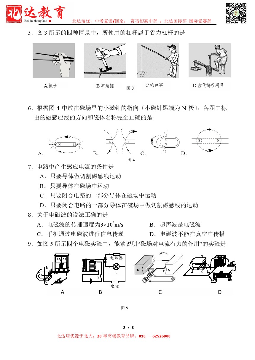 admw360中考网整理分享了2024北师大附实验中学初三(下)开学考物理试题,需要的同学赶紧下载练习吧。