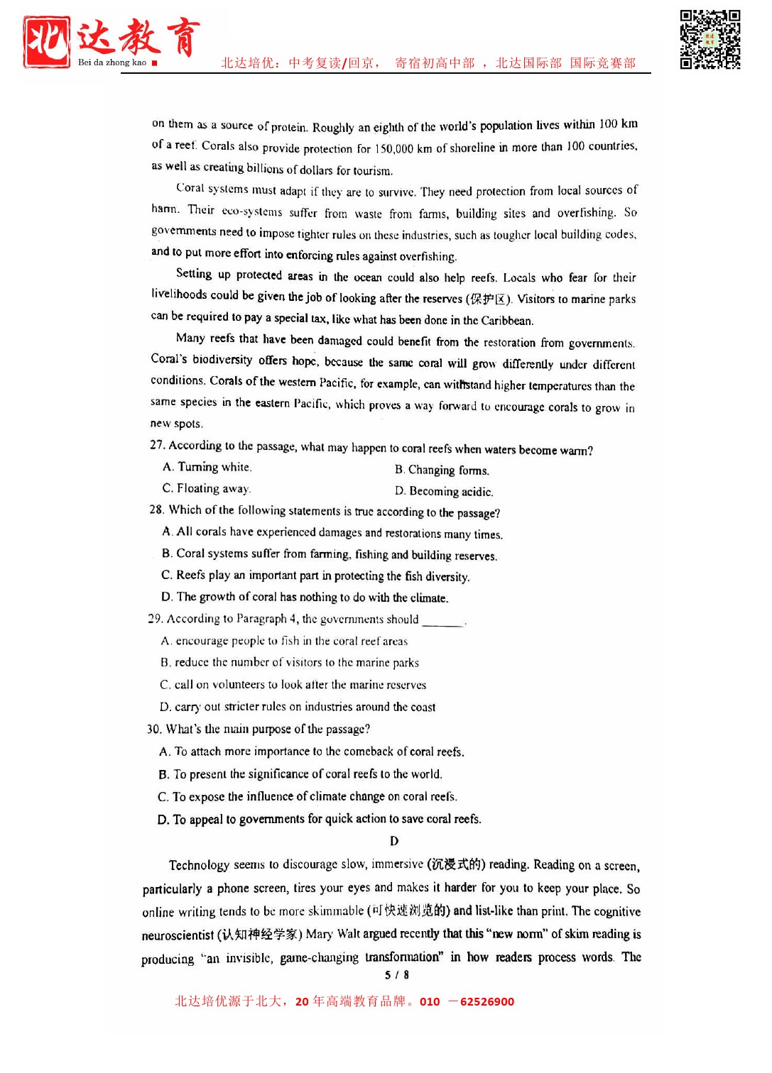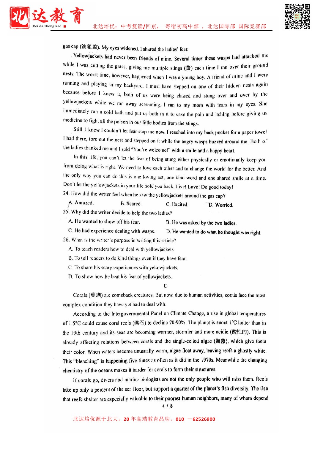 admw360中考网整理分享了2023~2024学年北京人大附中初三(下)开学考英语试题,需要的同学赶紧下载练习吧。