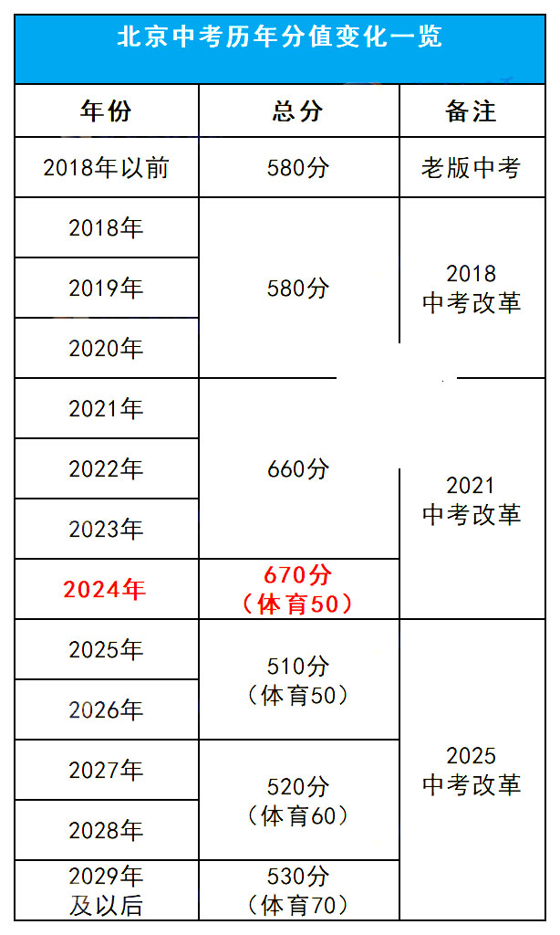 根据安排:2024北京中考体育分值由原先的40分增长为50分,中考总分由660分上涨至670分,为北京中考历年来最高分值↓↓
