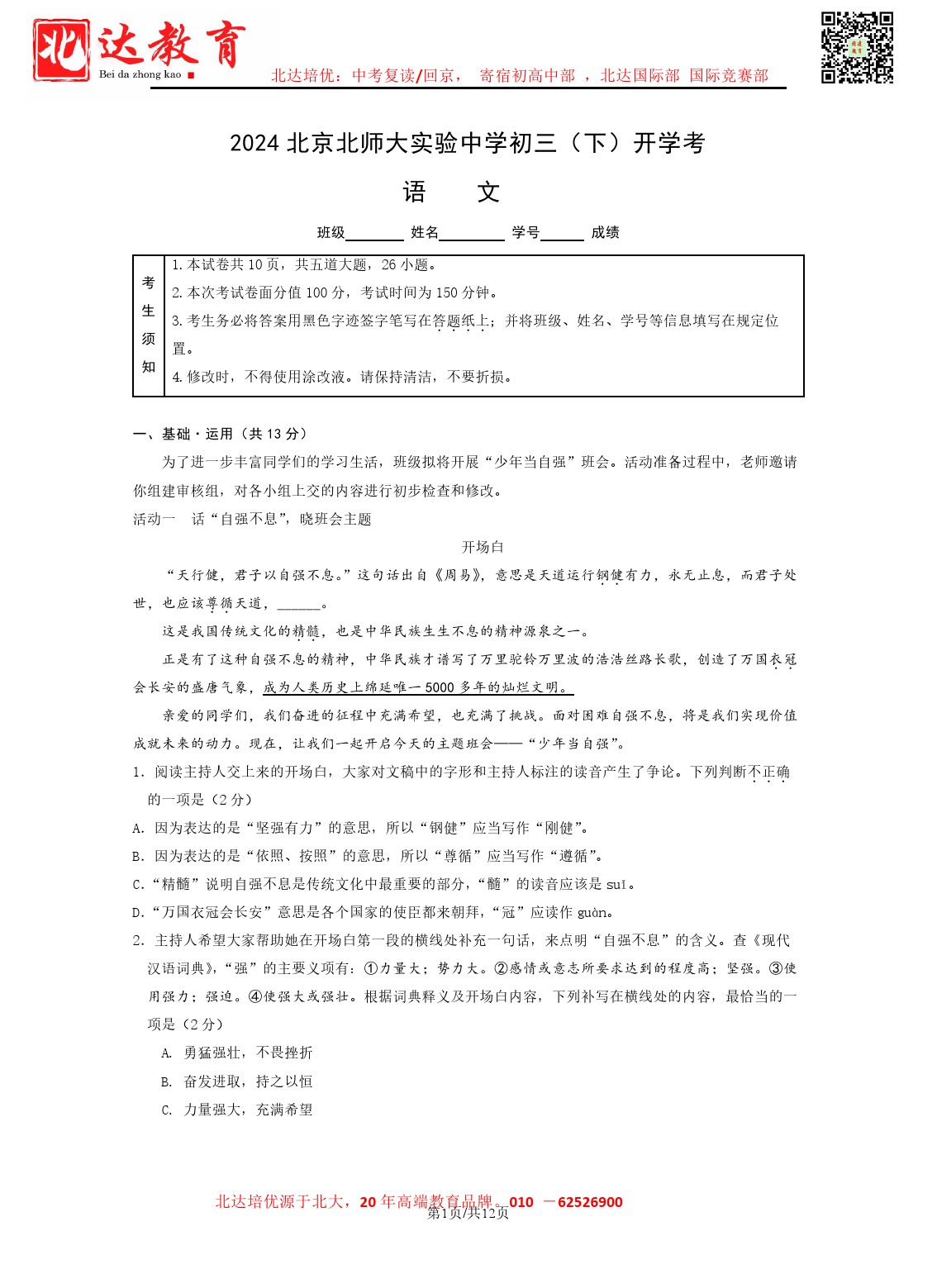 admw360中考网整理分享了2023-2024学年北师大实验中学初三开学考语文试题及答案,需要的同学赶紧下载练习吧。