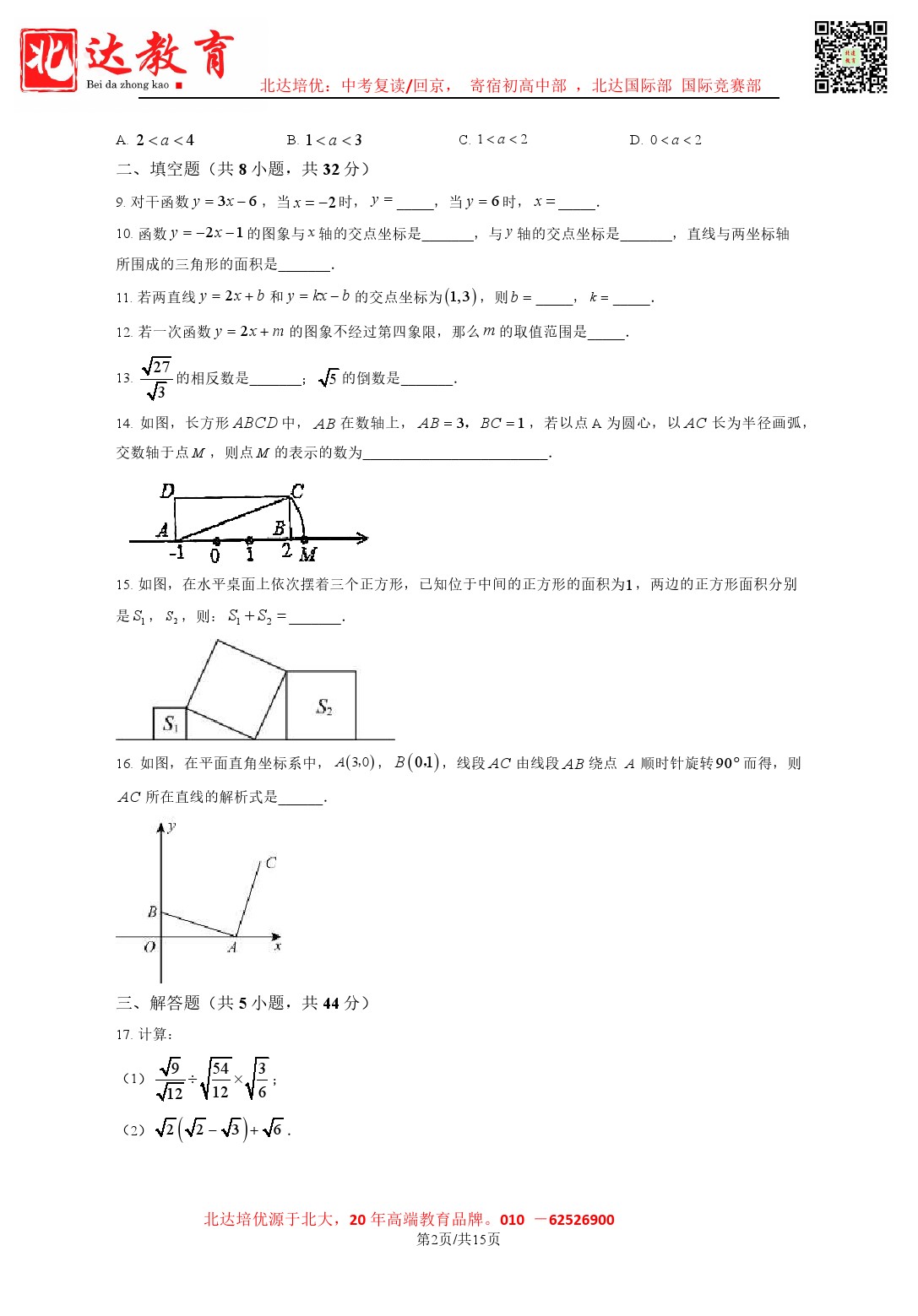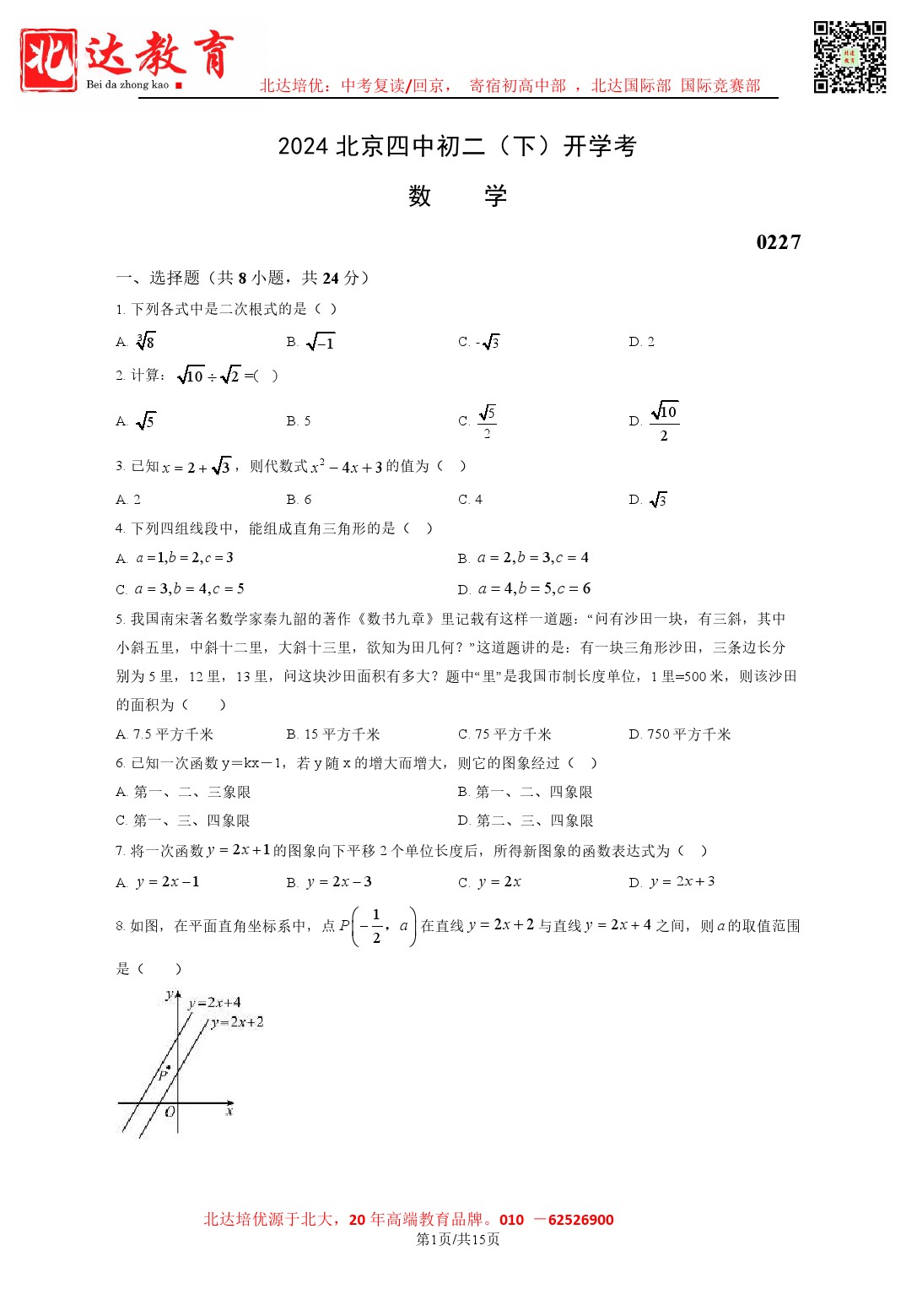 admw360中考网整理分享了2024北京四中初二(下)开学考数学试题及答案,需要的同学赶紧下载练习吧。
