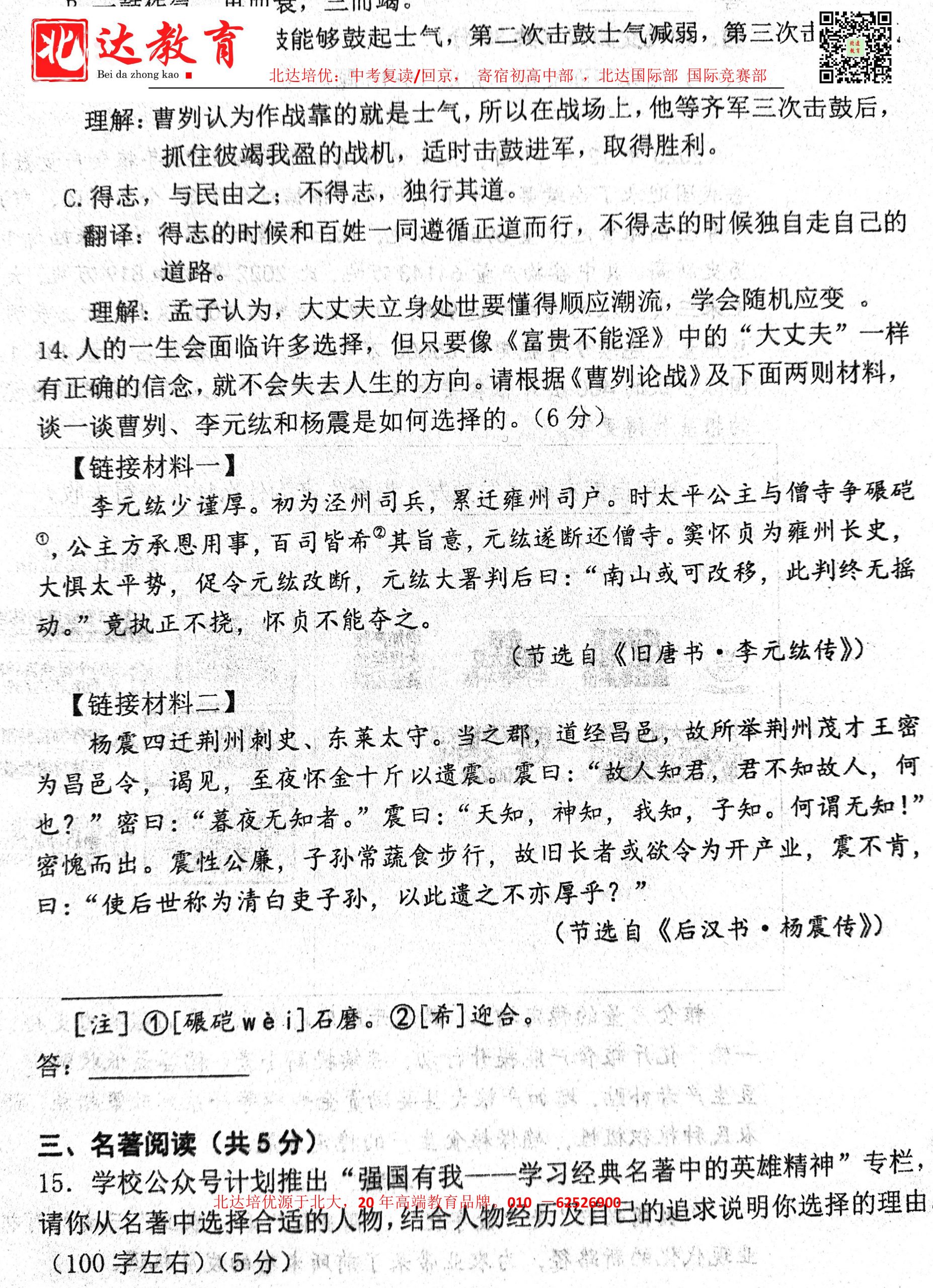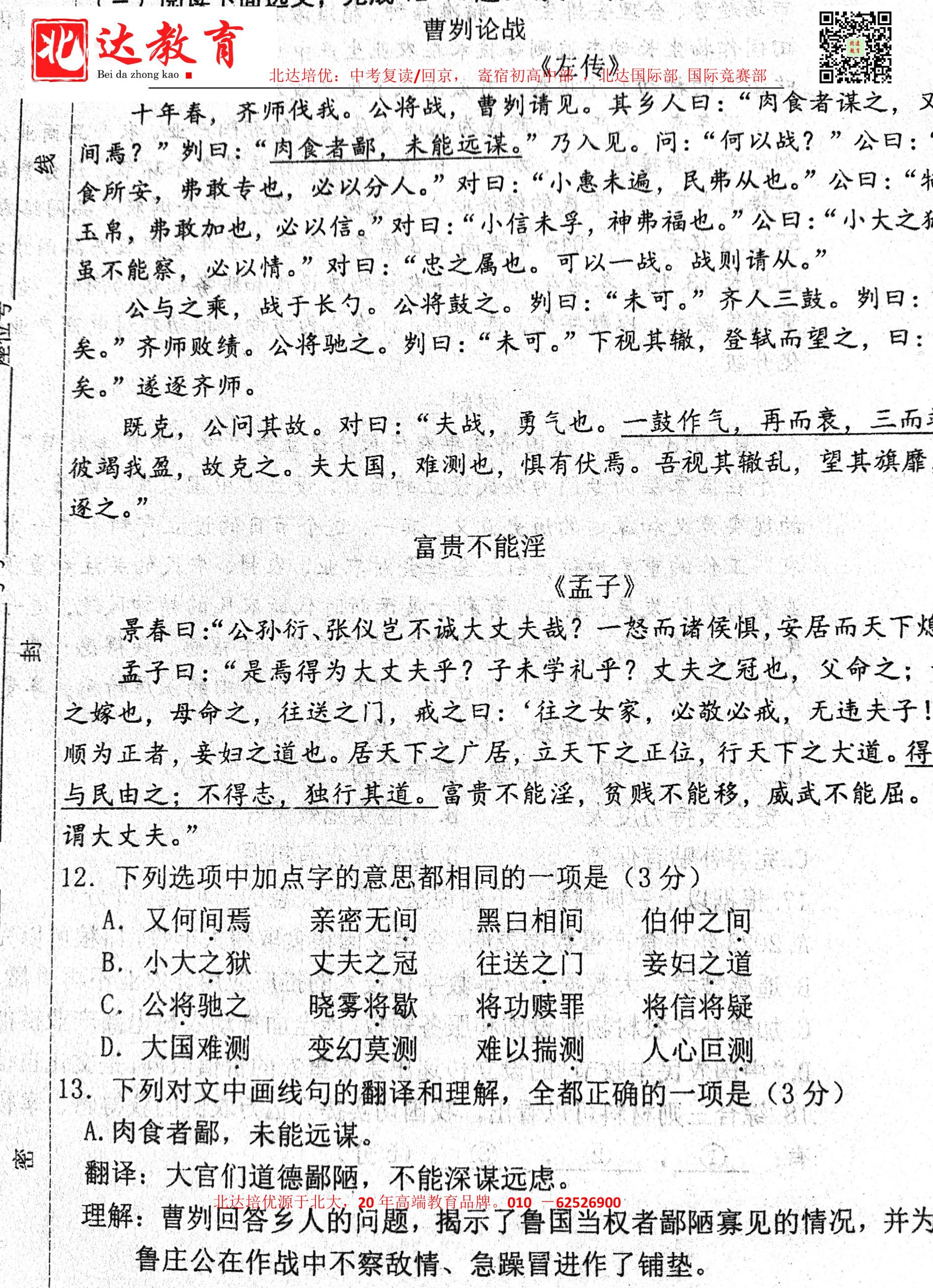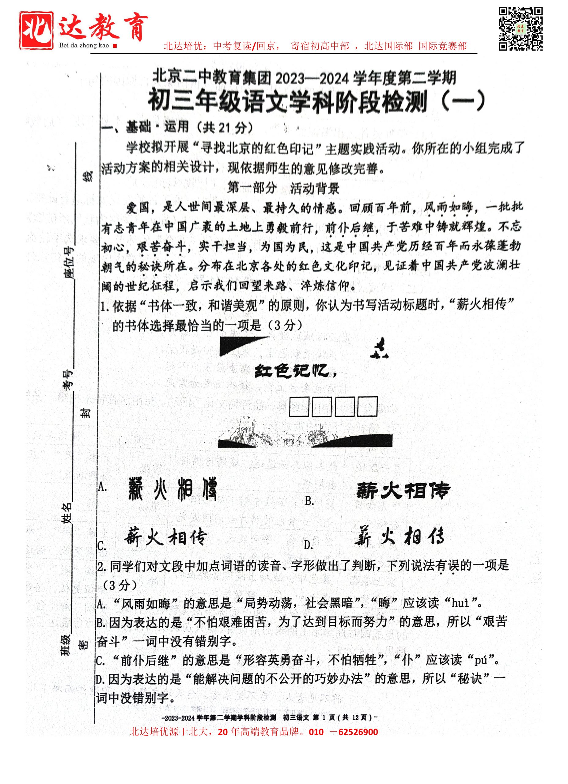 admw360中考网整理分享了2024北京二中初三下开学考语文试题(含答题卡),需要的同学赶紧下载练习吧。