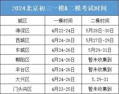 各位考生注意了!近日,我们了解到2024北京中考7区的模拟考试时间已经出炉。以下是admw360中考网整理的内容详情: