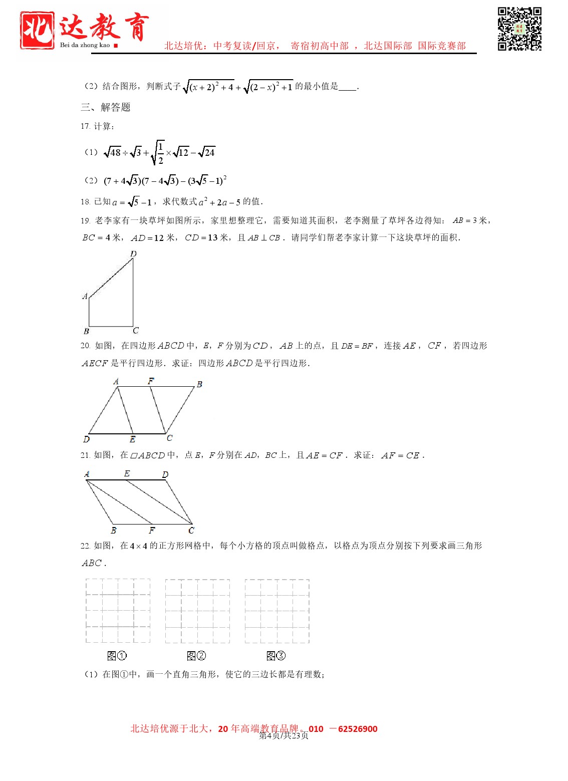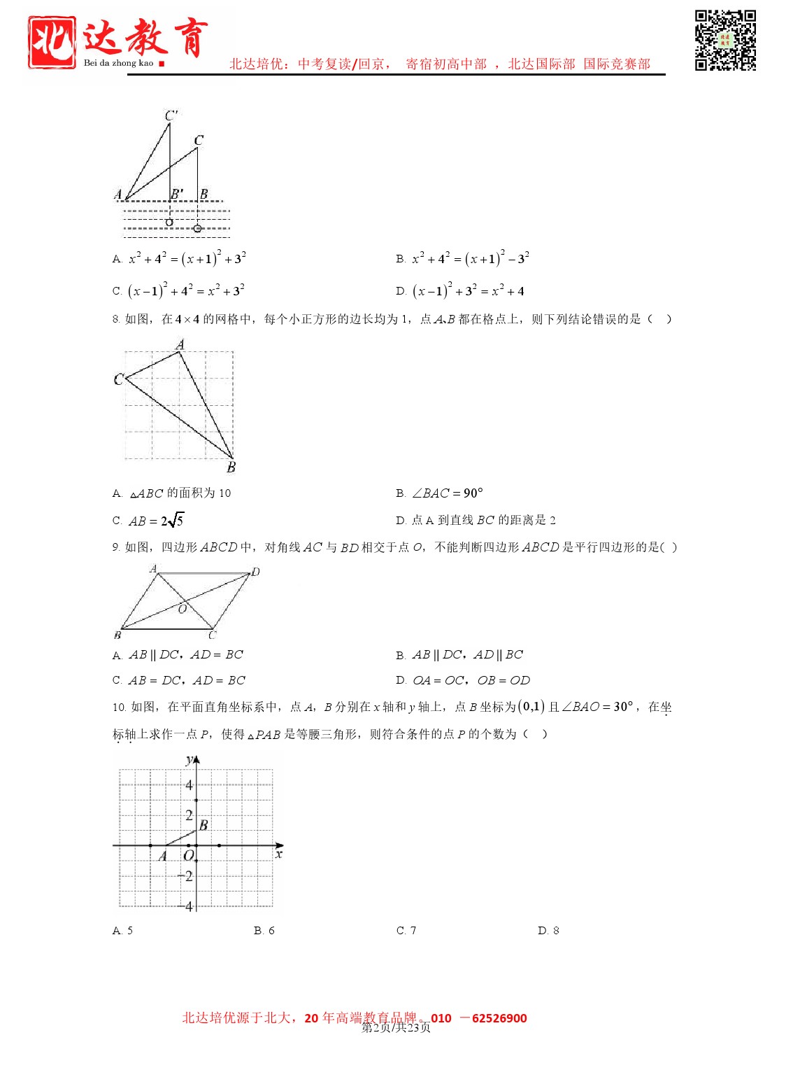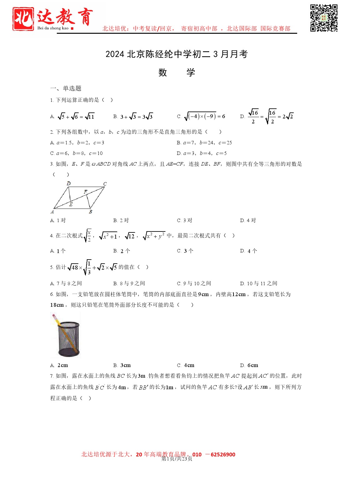 admw360中考教研组最新整理了2024年北京陈经纶中学初二(下)3月月考数学试题及答案,需要的同学赶紧下载练习吧! 北京admw360全日制学校,中高考复读,外地回京中高考 电话咨询:400-61…