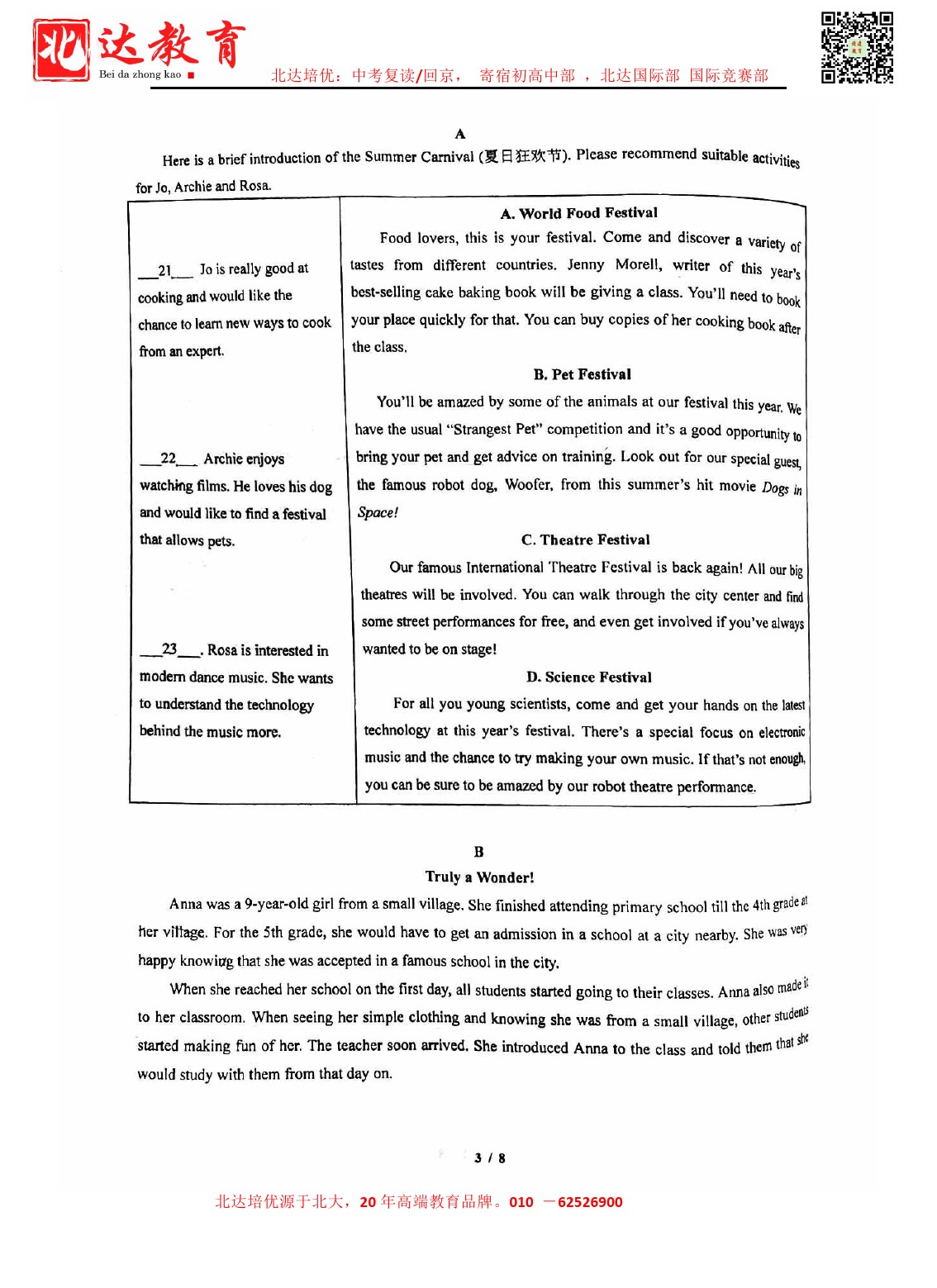 admw360中考网最新整理了2024人大附中初三( 下) 3月月考英语试题含答案解析,需要的同学赶紧下载练习吧! 北京admw360全日制学校,中高考复读,外地回京中高考 电话咨询:400-6168…