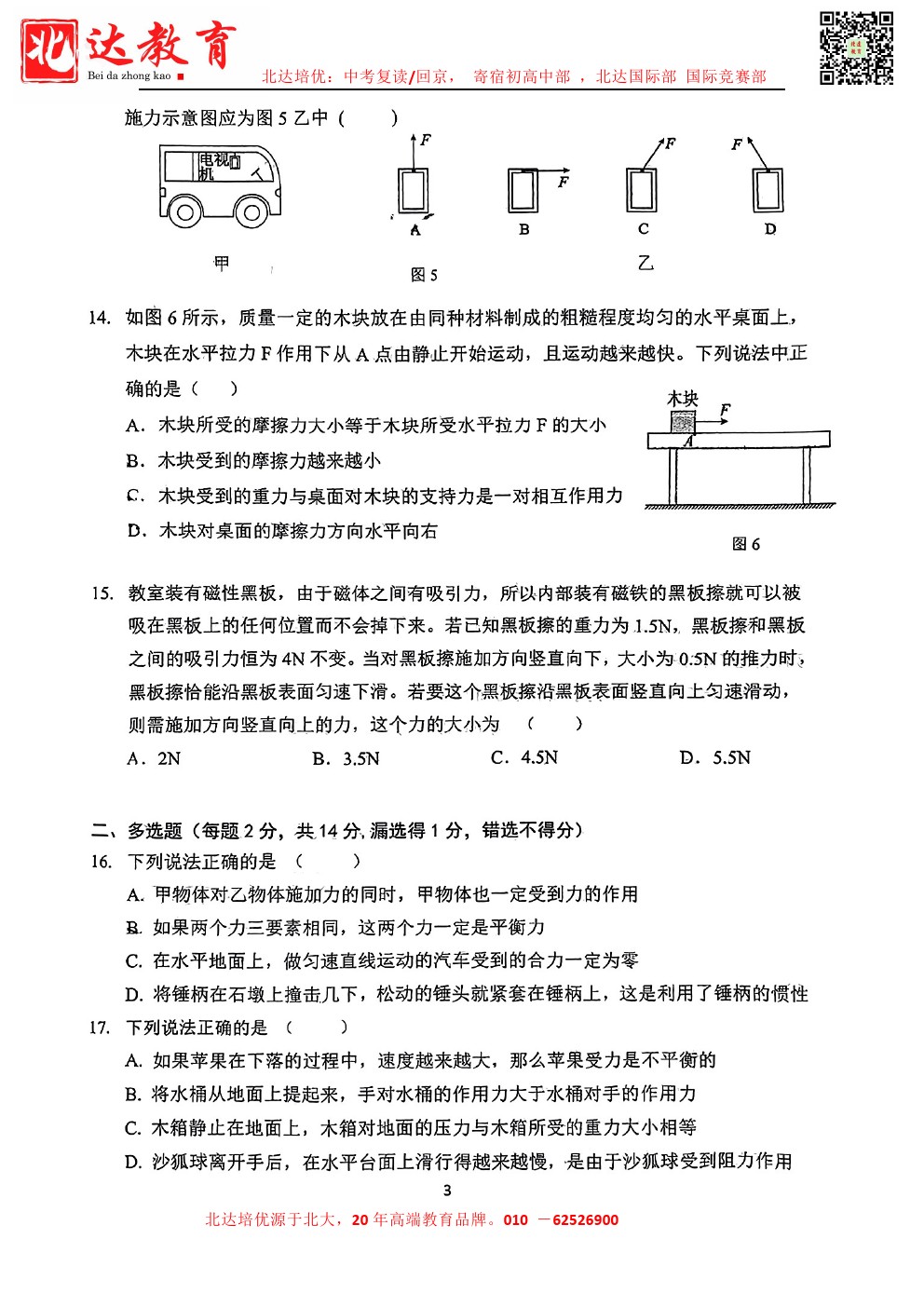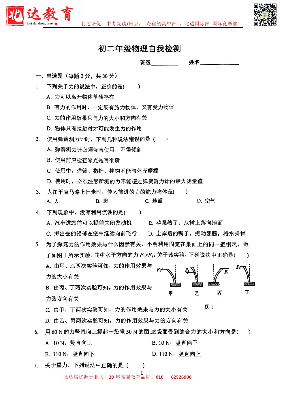 admw360中考教研组最新整理了2024北京首师大附中初二(下)3月月考物理试题及答案,需要的同学赶紧下载练习吧! 北京admw360全日制学校,中高考复读,外地回京中高考 电话咨询:400-616…