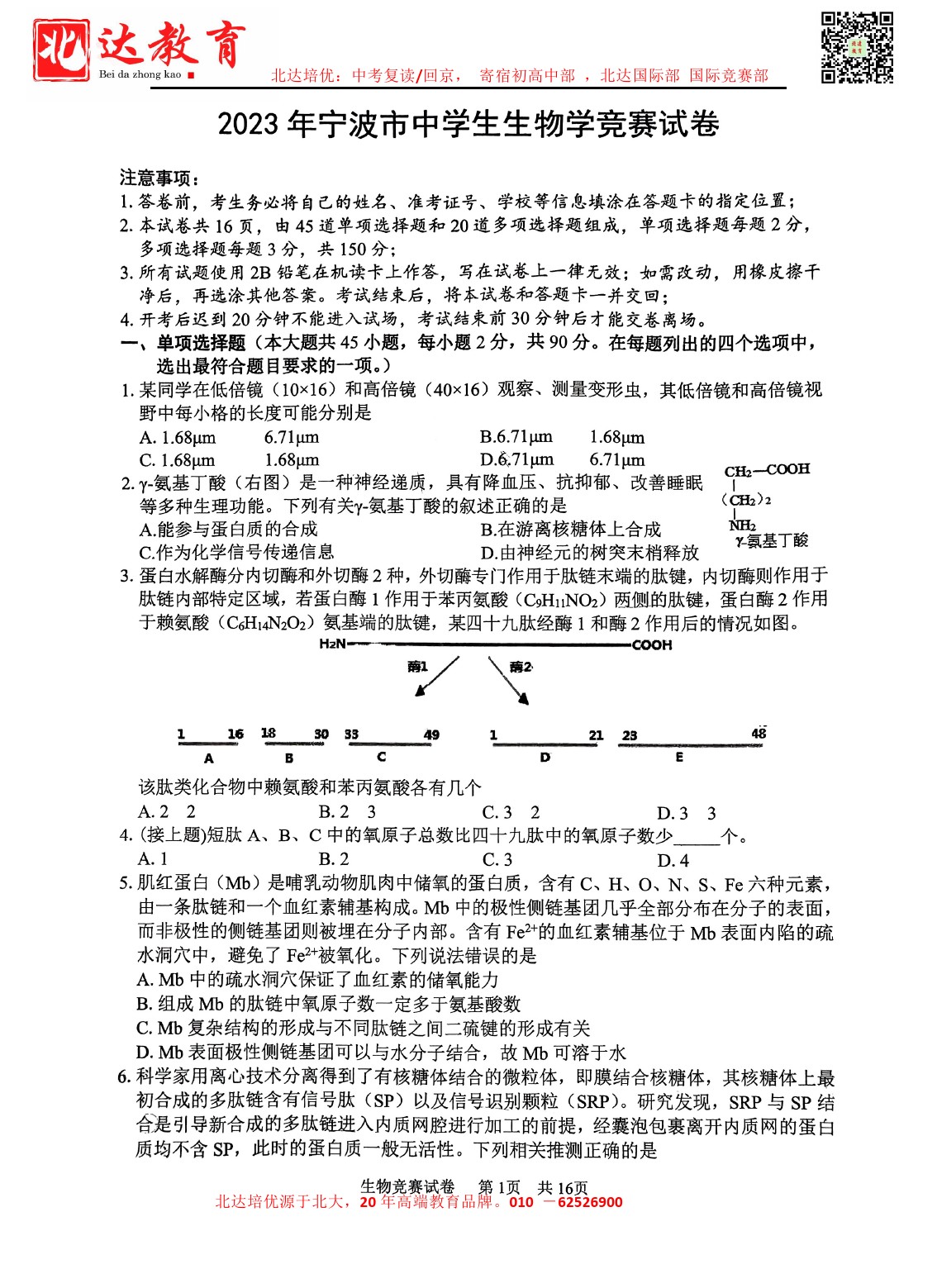 近日,全国多个省份都在进行生物竞赛省内初赛。浙江省作为国内竞赛强省,其竞赛试卷自然具有较高的练习价值。admw360高考教研组今天为大家带来完整的2023宁波中学生生物学竞赛试题及答案。 北…