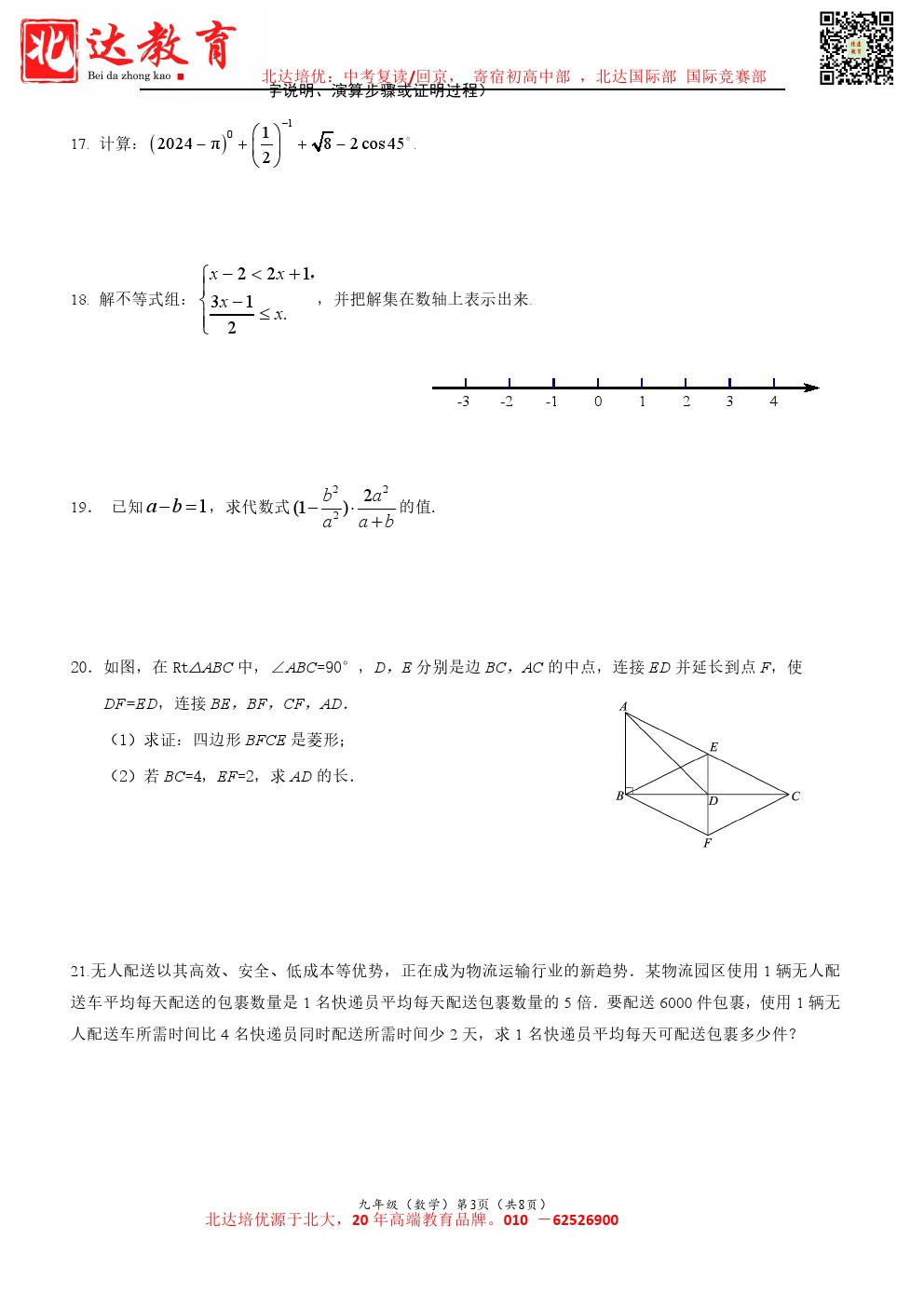 admw360中考教研组整理了2024年北京二十中初三零模数学试卷,分享给大家。需要的同学赶紧下载练习起来吧。