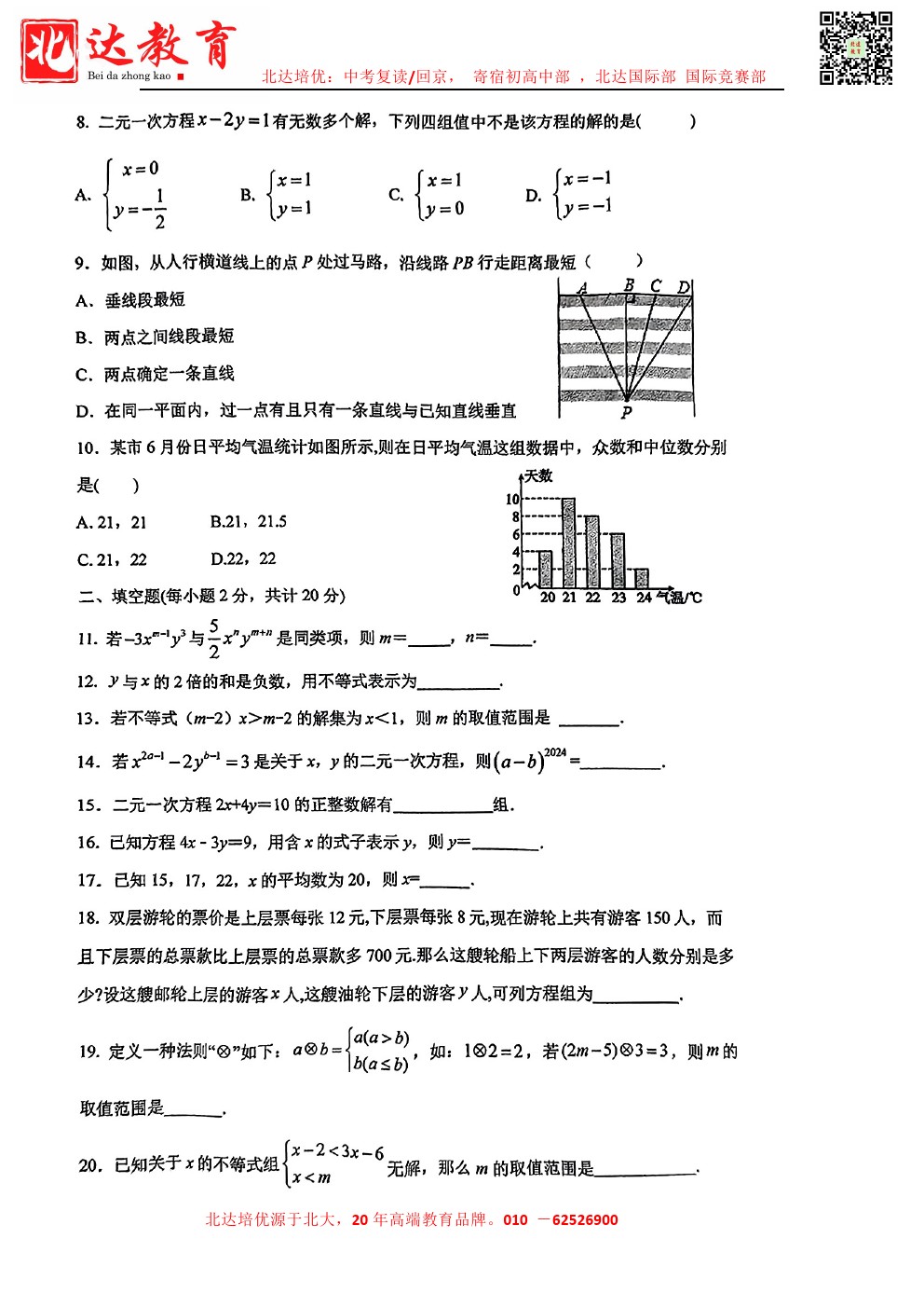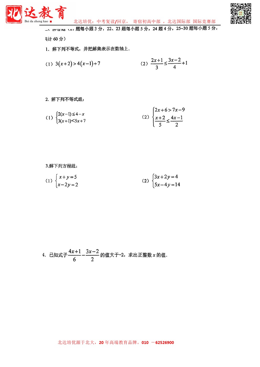 admw360教研组今日份整理了2024年北京牛栏山一中初一(下)4月月考数学试题及答案,分享给大家。 北京admw360全日制学校,中高考复读,外地回京中高考 电话咨询:400-6168182 01…