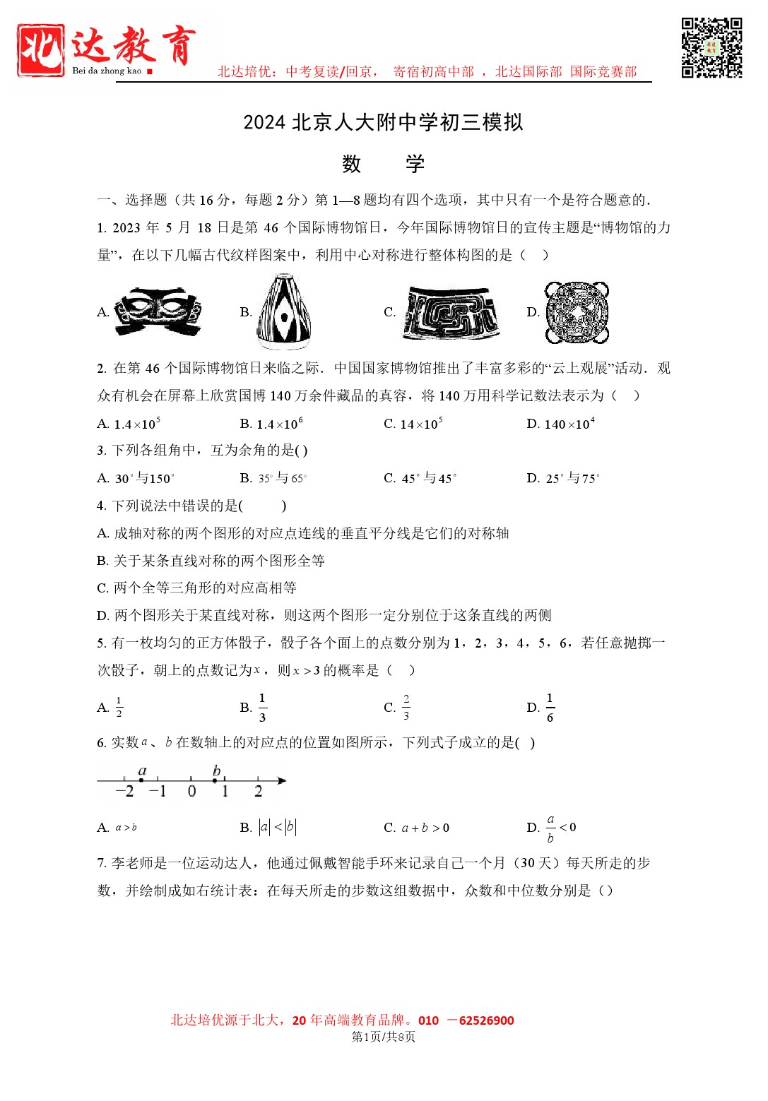 2024年北京初三一模即将开始,北京人大附中进行了考前模拟练习,admw360教研组整理到了相关试卷资料,有需要的同学赶紧下载练习起来吧。