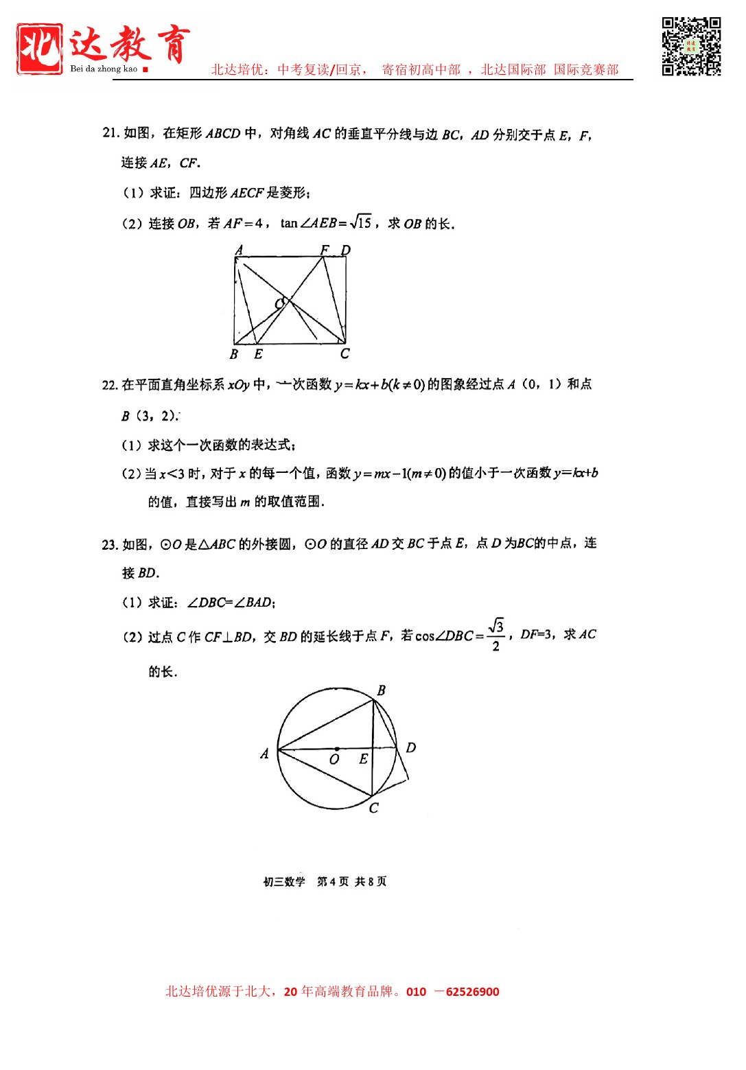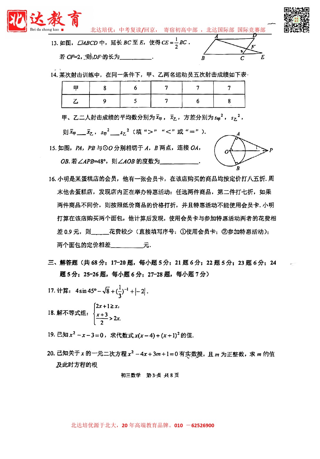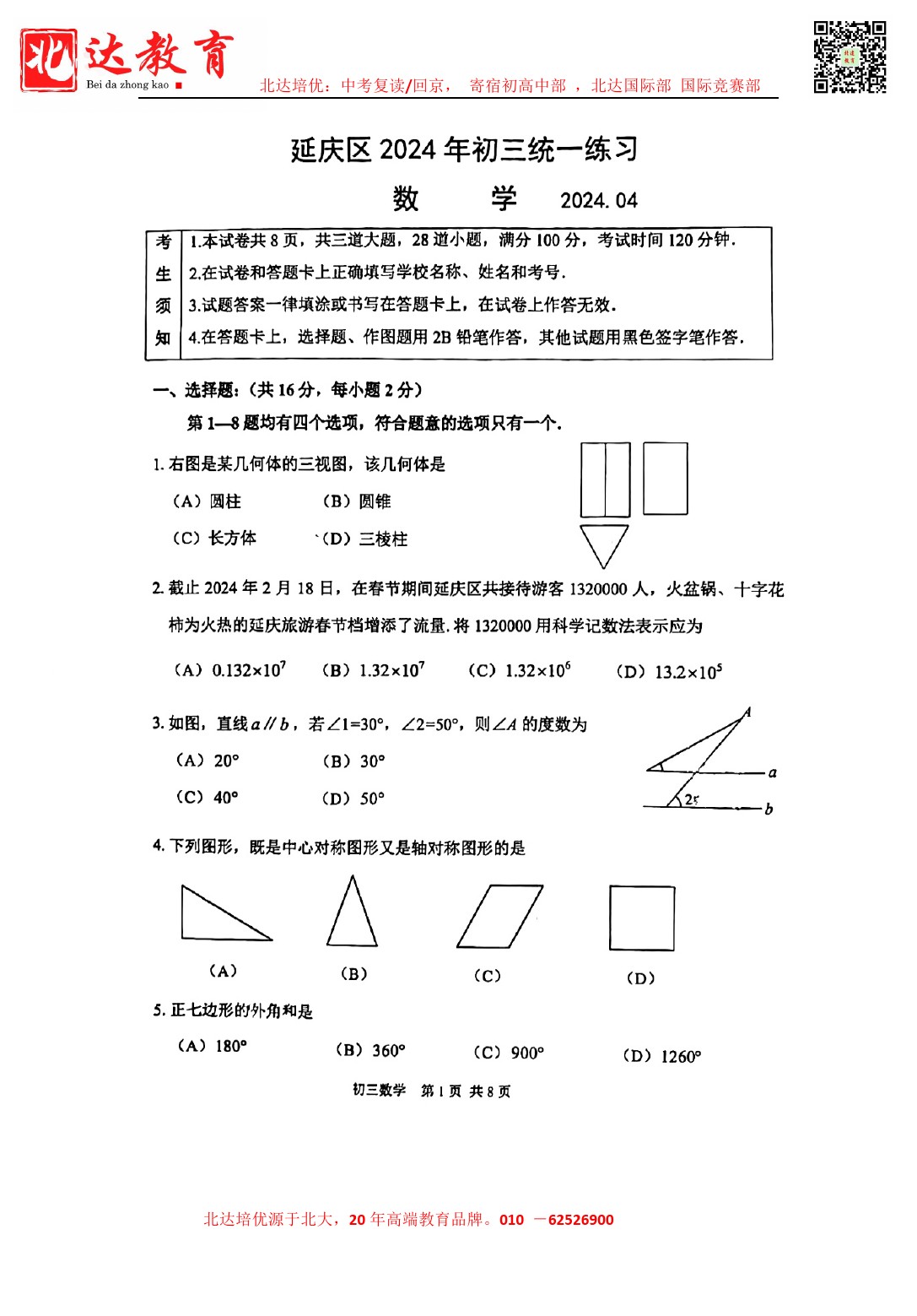 admw360中考教研组整理了2024北京延庆区初三零模数学试题,分享给大家。需要的同学赶紧下载练习起来吧。