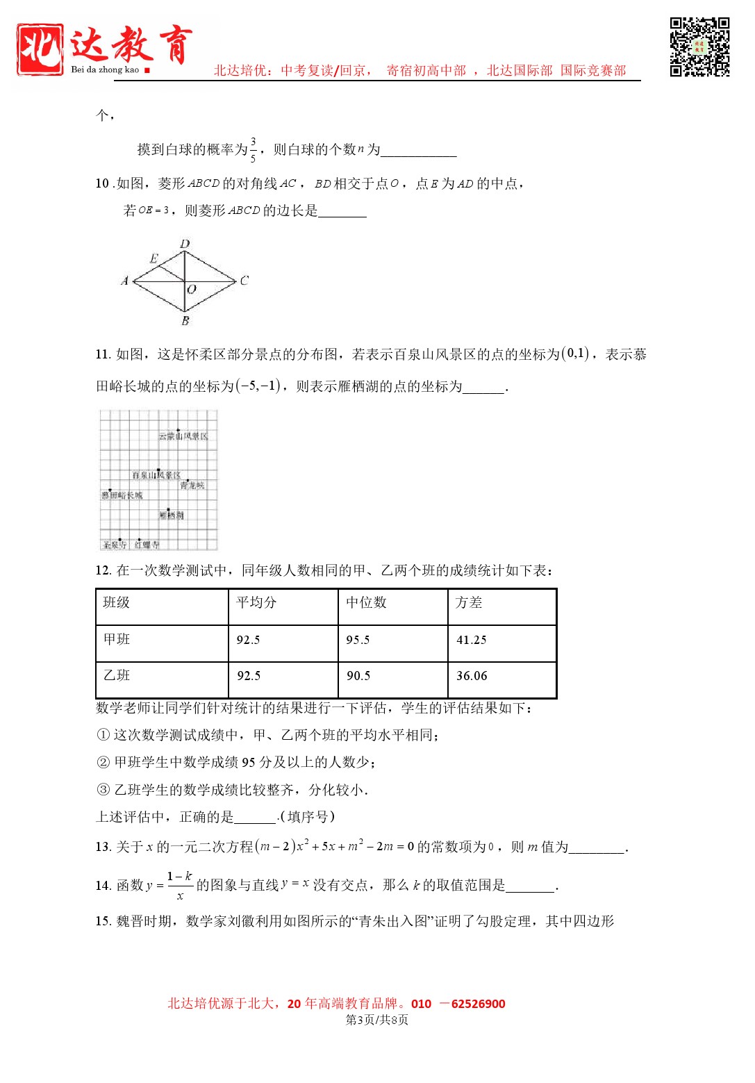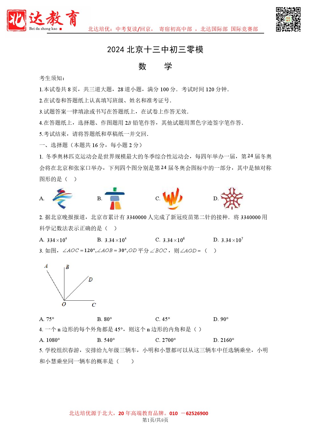 admw360中考教研组整理了2024北京十三中初三零模数学试题,分享给大家。需要的同学赶紧下载练习起来吧。