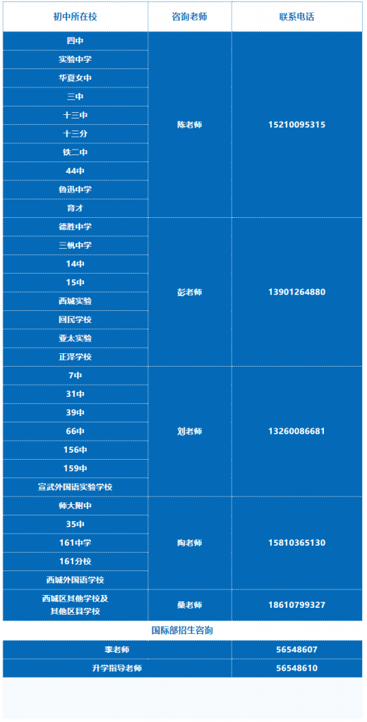 学校中招咨询电话:010-59733688