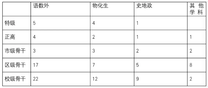 学校高中共有教学班36个,学生1425人,一线教师135人,其中博士后、博士14人,特级教师10人,正高级教师8人。各级各类骨干教师占比50%,各学科平衡且均有领军人,形成了一支师德高尚、教育理念新、科研能力强、富有创新精神的高素质专业化教师队伍。