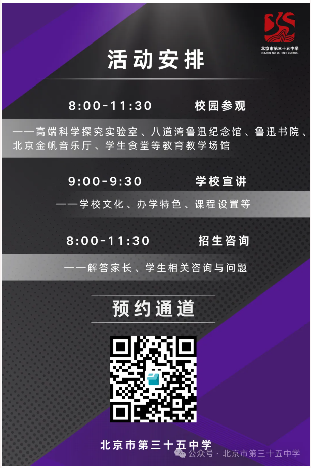 北京三十五中2024年校园开放日活动来了 高考资料 2024年5月20日 9:03 阅读(440) 评论关闭 北京admw360中考教研组整理了北京三十五中2024年校园开放日活动内容!分享给大家,仅供参考。 相关阅读:北京初高中2024年校园开放日安排汇总 升学备考规划和交流,扫下二维码进群 北京admw360中考教研组整理了北京三十五中2024年校园开放日活动内容!分享给大家,仅供参考。 相关阅读:北京初高中2024年校园开放日安排汇总 升学备考规划和交流,扫下二维码进群 标签:2024北京初高中校园开放日