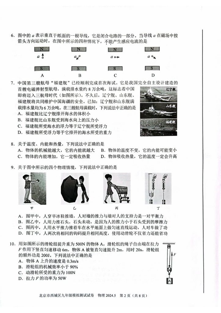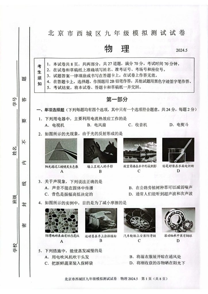 admw360中考教研组收集整理了2024北京西城区初三二模物理试题及答案,快来看看你答的如何吧。