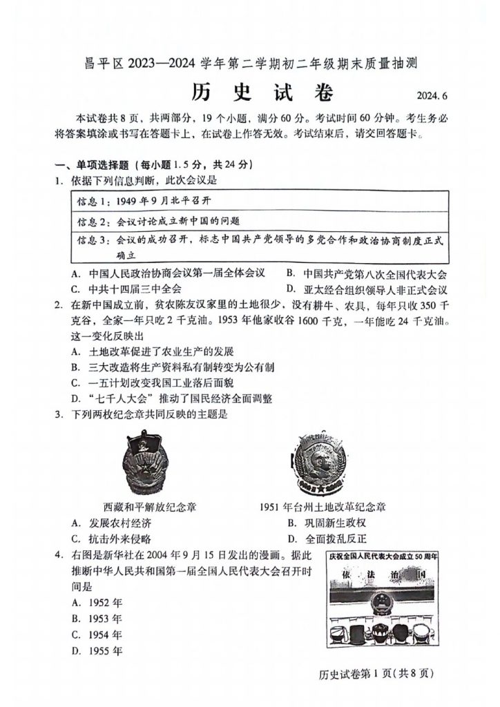 2024北京昌平区初二(下)期末历史试卷及答案 高考资料 2024年6月28日 10:56 阅读(405) 评论关闭 2024北京昌平区初二下期末考试已开始,小编为大家收集整理了相关科目的试卷,需要的同学可自行下载。 试卷预览: 试题下载:http://365.beijing518.com/110… 2024北京昌平区初二下期末考试已开始,小编为大家收集整理了相关科目的试卷,需要的同学可自行下载。 试卷预览: 试题下载:http://365.beijing518.com/11079.html 标签:2024北京初二(下)期末考
