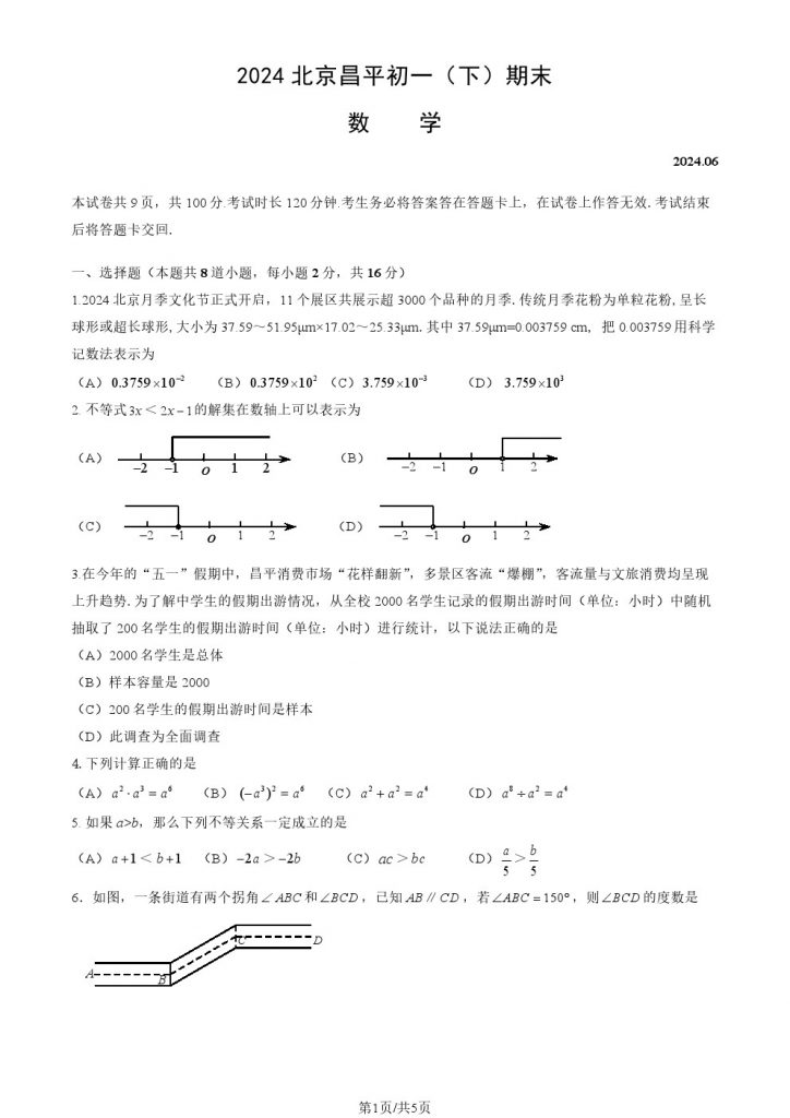 2024北京昌平区初一下期末考试已开始,小编为大家收集整理了相关科目的试卷,需要的同学可自行下载。