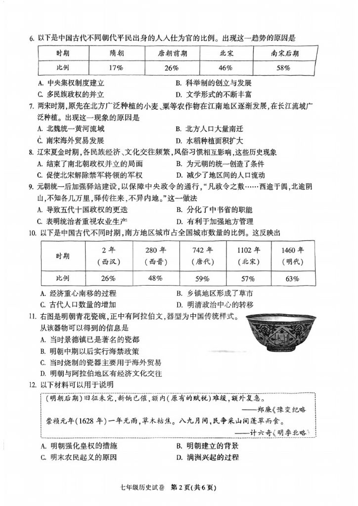 首页 初一试题 2024北京朝阳区初一(下)期末历史试题及答案