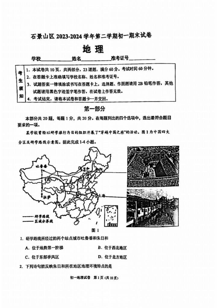 2024北京房山区初一下期末考试已开始,小编为大家收集整理了相关科目的试卷,需要的同学可自行下载。