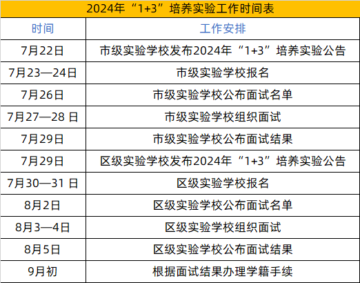 为确保招生工作的有序进行,北京市教委详细公布了“1+3”培养实验工作的时间安排。具体而言: