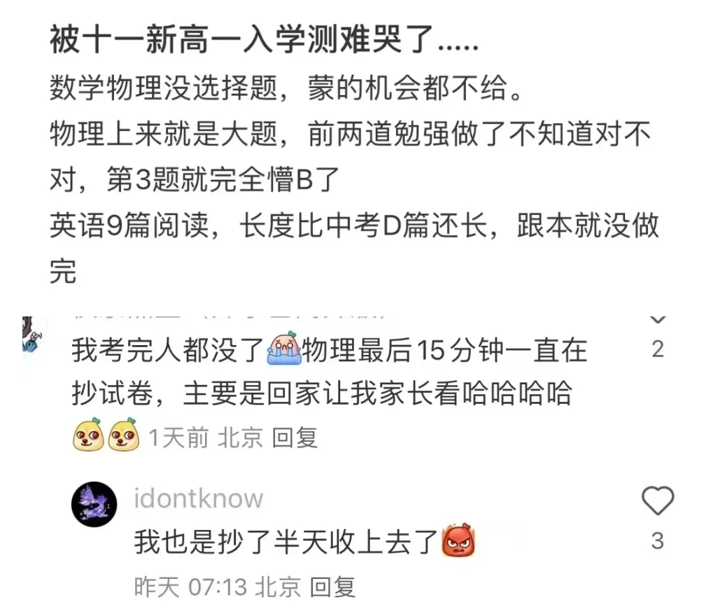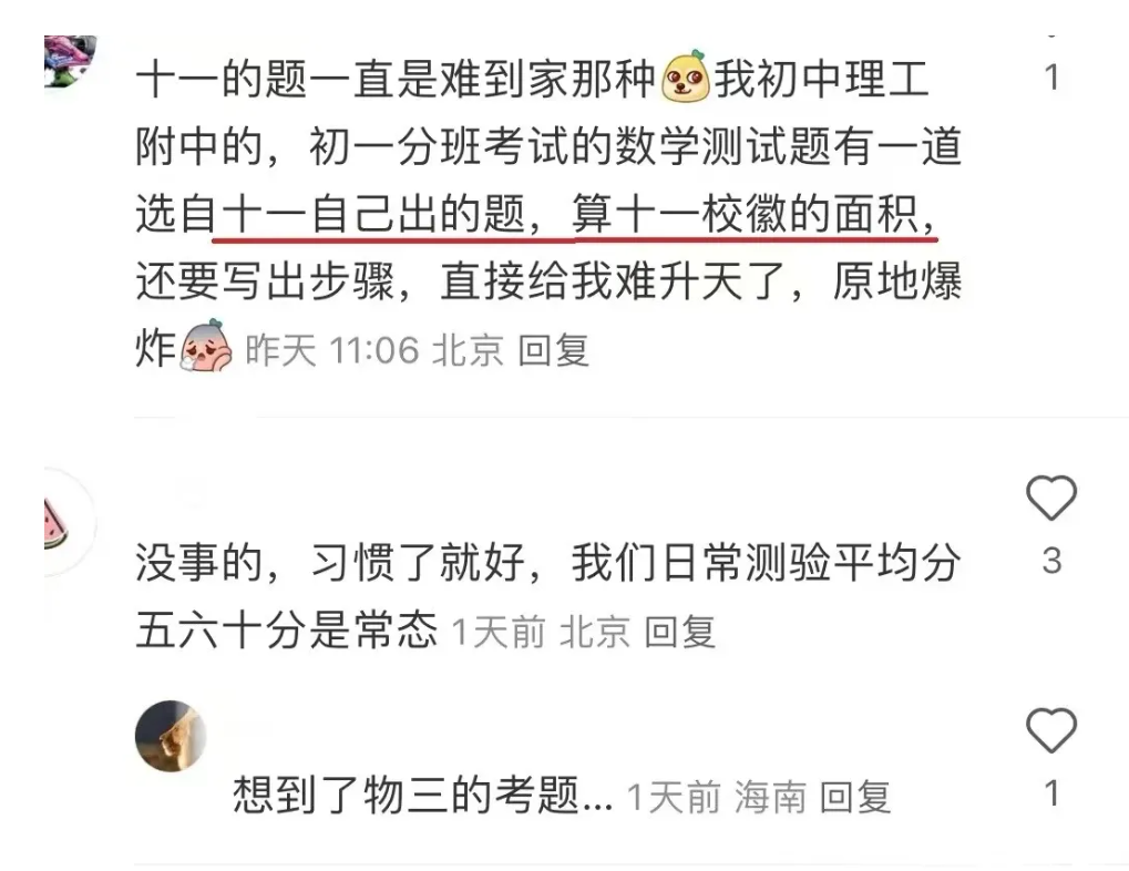 同样,刚刚结束的十一学校的分班考试也被学生“吐槽”难度非常大!