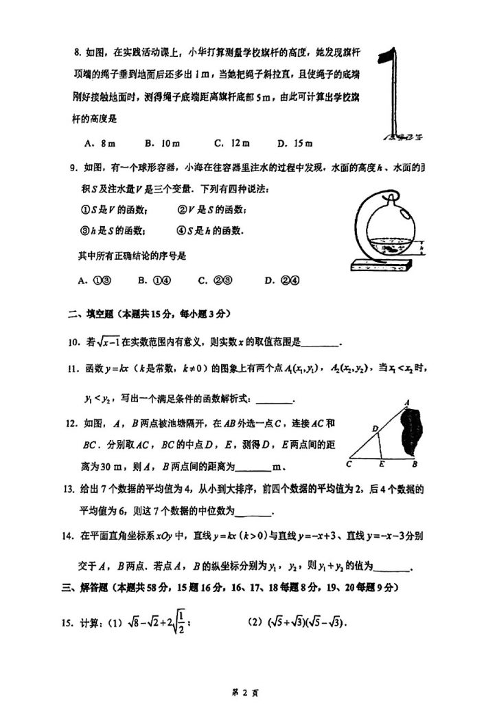 2024北京丰台二中初三(上)开学考数学试题及答案出炉,以下是小编为大家整理的相关内容,一起来看: