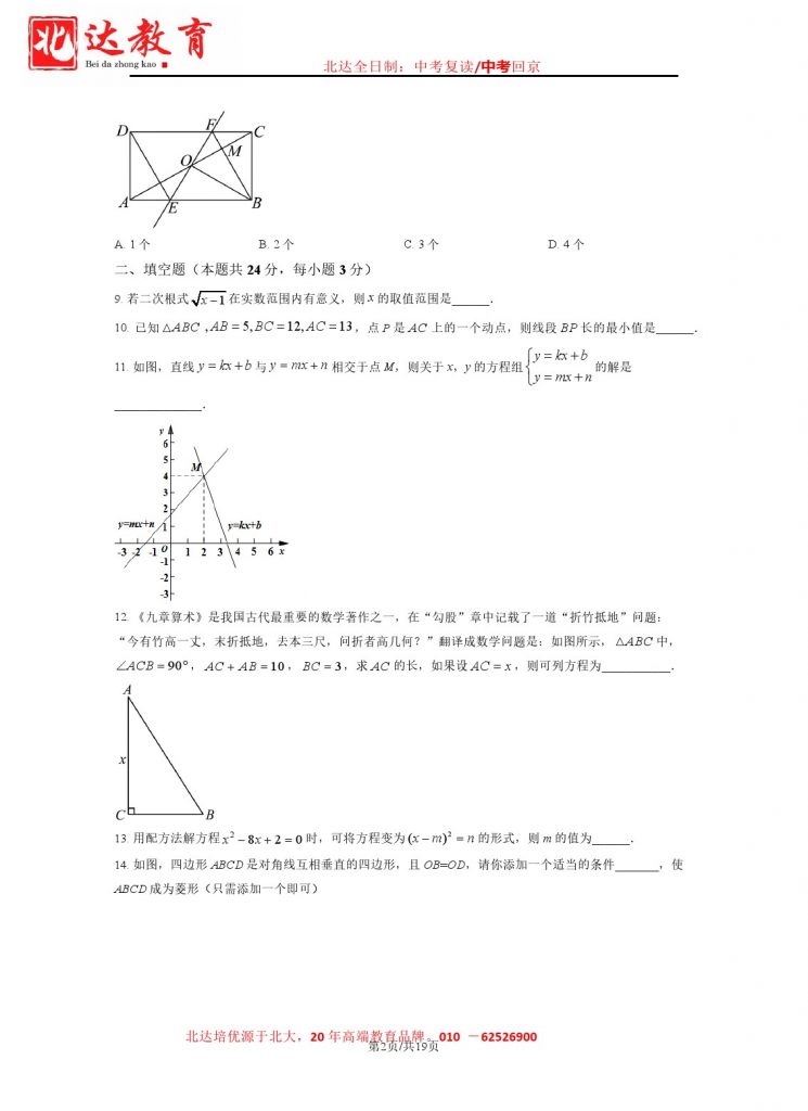 2024北京人大附中朝阳学校初三(上)开学考数学试题及答案出炉,以下是小编为大家整理的相关内容,一起来看: 试题下载:http://365.beijing518.com/11467…