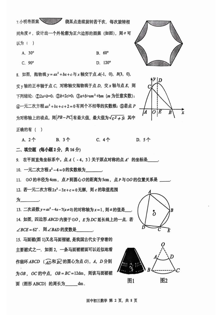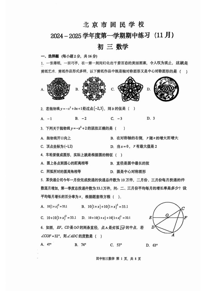 北京2024-2025学年期中考试正在陆续进行中,为方便大家对答案、下载练习等小编给大家搜集了2024北京回民学校初三(上)期中数学试题,需要的小伙伴赶紧下载练习起来吧: