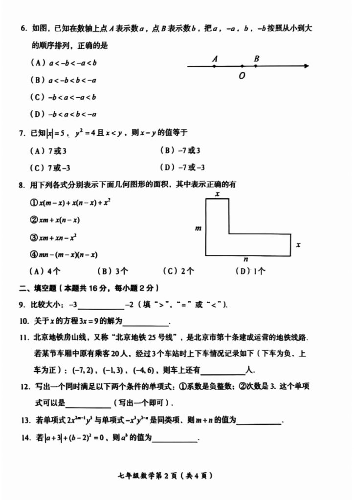 北京2024-2025学年期中考试正在陆续进行中,为方便大家对答案、下载练习等小编给大家搜集了2024北京房山初一(上)期中数学试题,需要的小伙伴赶紧下载练习起来吧: