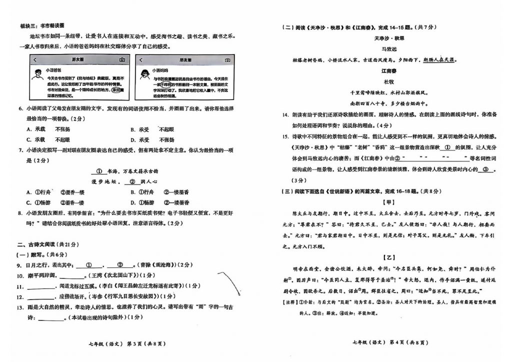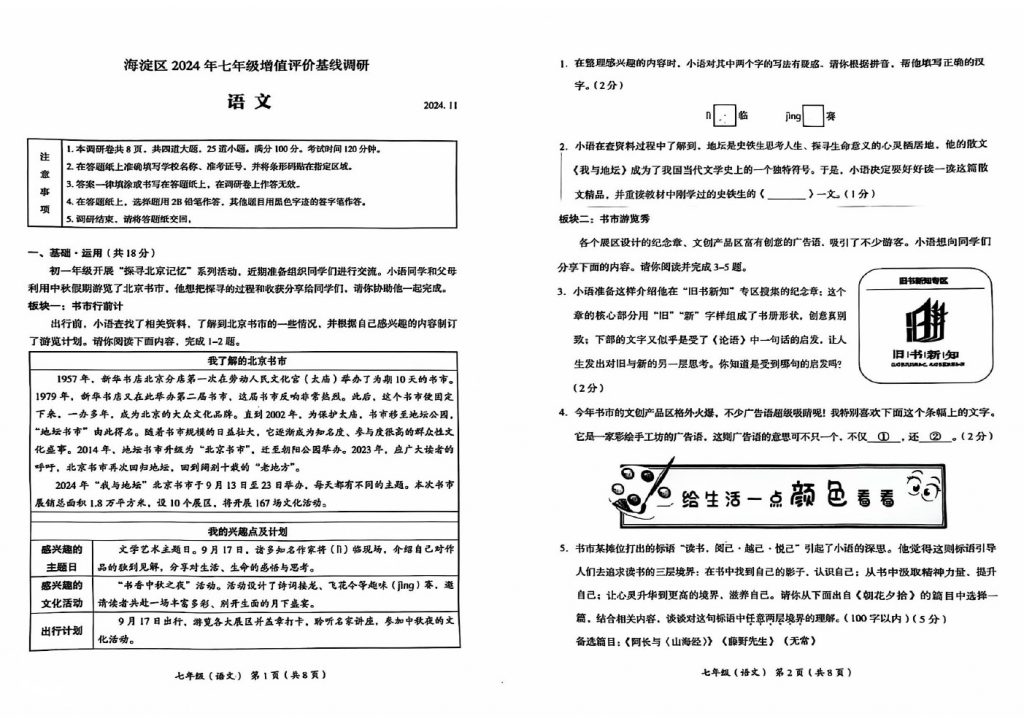 北京2024-2025学年期中考试正在陆续进行中,为方便大家对答案、下载练习等小编给大家搜集了2024北京海淀区初一(上)期中语文试题,需要的小伙伴赶紧下载练习起来吧: 试题预览:…