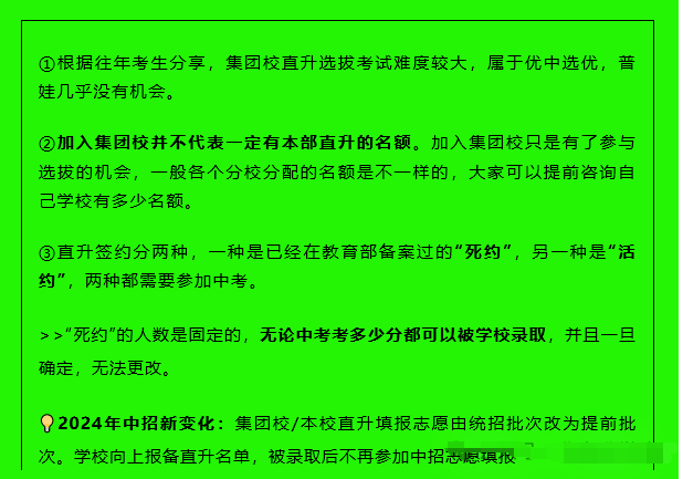 各学校的直升依据不同,部分学校主要依据初三期末考试成绩及一模成绩进行选拔,而另一些学校还会额外组织直升选拔考试。根据历年经验,直升考试往往难度较大,尤其注重对数学和物理学科的考察。