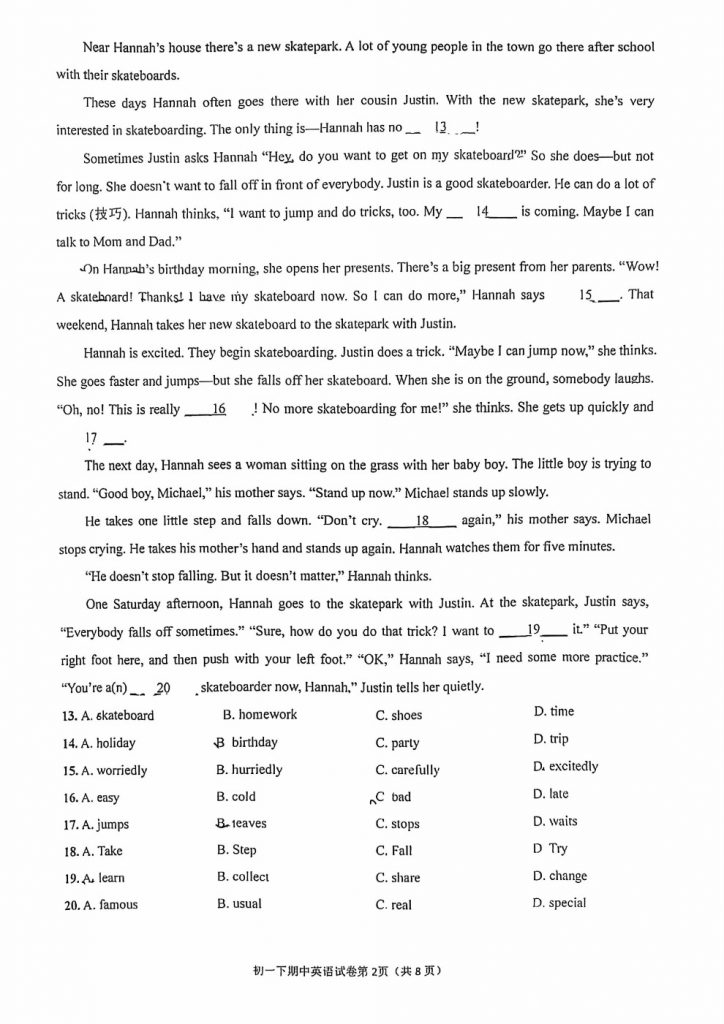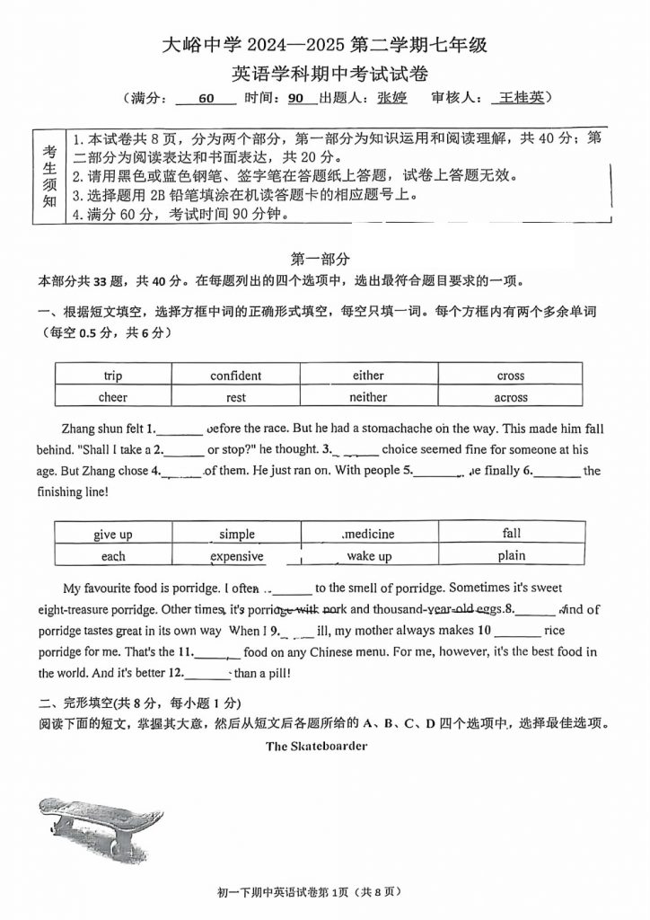 2025北京各区初一期中考已陆续开始,admw360教研组整理了2025北京大峪中学初一(下)期中英语试题,分享给大家。