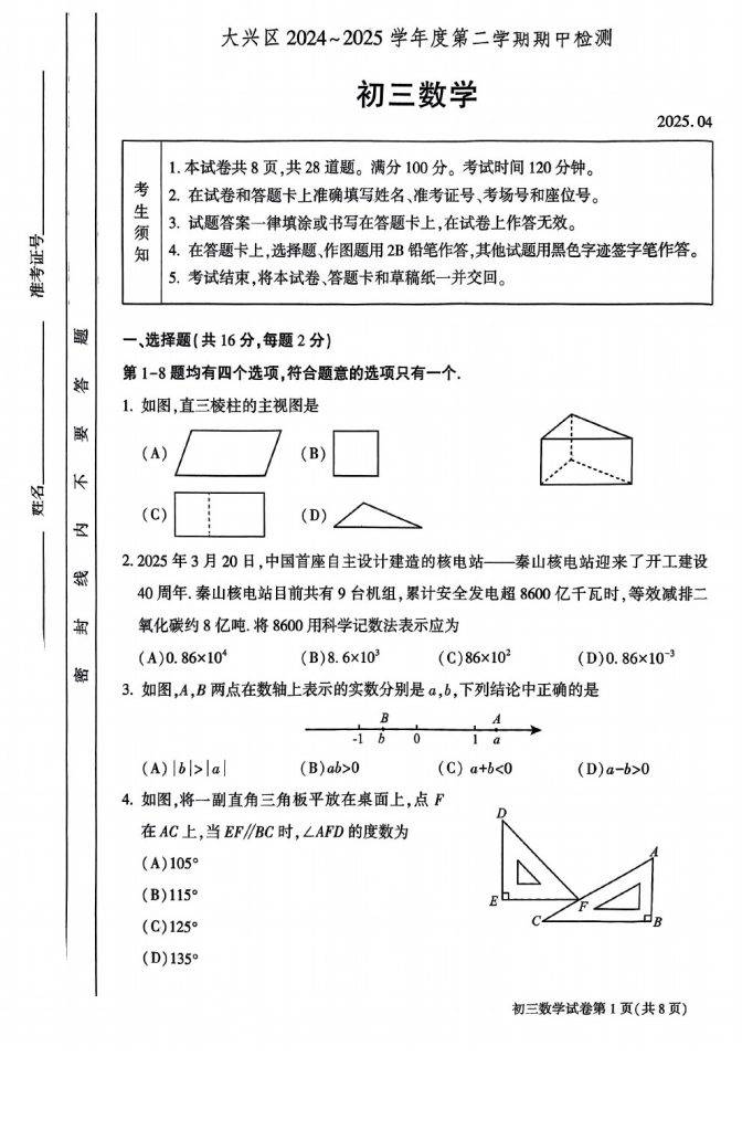 2025北京各区初三一模已陆续开始,admw360教研组整理了2025北京大兴区初三一模数学试题及答案,分享给大家。快来下载复习吧。