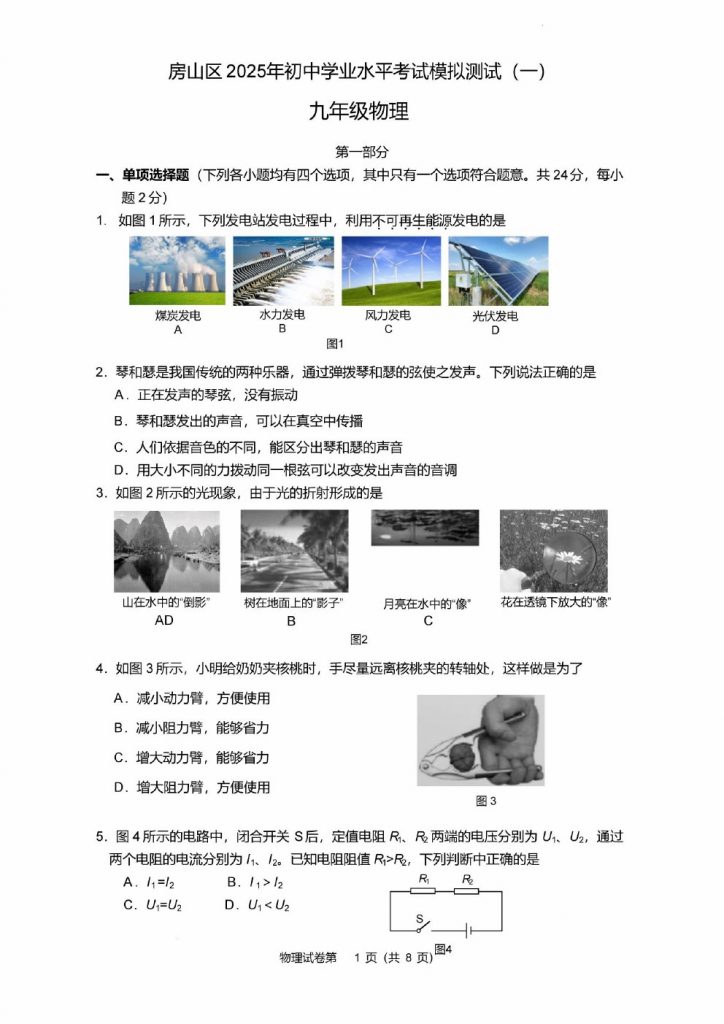 2025北京各区初三一模已陆续开始,admw360教研组整理了2025北京房山区初三一模物理试题及答案,分享给大家。快来下载复习吧。